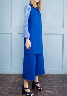 Особое место в коллекции занимает легкий хлопковый трикотаж, который позволяет максимально раскрыть тему женственности. Платья и комплекты, состоящие из топов и юбок длиной до середины икры, садятся точно по фигуре, подчеркивая изгибы тела. Футболки, безрукавки, бадлоны и пуловеры свободного кроя также выполнены из этого материала, что делает их идеальными для петербургского лета. Специально под него и создавалась коллекция, вещи из которой могут не только выступать сольно, но и наслаиваться друг на друга при необходимости. Платье «А»-силуэта гармонично сочетается с приталенной рубашкой и брюками-кюлотами, благодаря чему получается сложносочиненный ансамбль. Составляющие его части могут в течение дня меняться или попросту сниматься, словно детали конструктора.