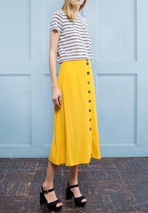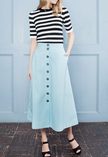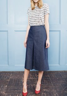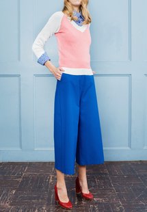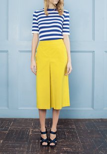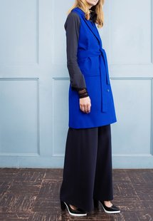 В этом сезоне у Jana Segetti появился деним, как своеобразная дань рабочей одежде. Начало джинсовой истории положили брюки-трубы и две юбки – с пуговицами и со встречной складкой. Они открывают палитру синих оттенков, превалирующих в коллекции: от спокойного цвета джинсовой ткани до экспрессивных оттенков электрик и бирюзы. Дальше краски уходят в пастель и рассыпаются на множество карамельных оттенков: от мятного леденца до сахарной розы. Жизнерадостным акцентом становится насыщенный желтый, который в сочетании с бело-синей полоской дает ощущение средиземноморского курорта, скрашивающее настроение северного лета. А легкие плащи и куртки, скроенные по принципу макинтоша, гарантируют независимость от капризной погоды.