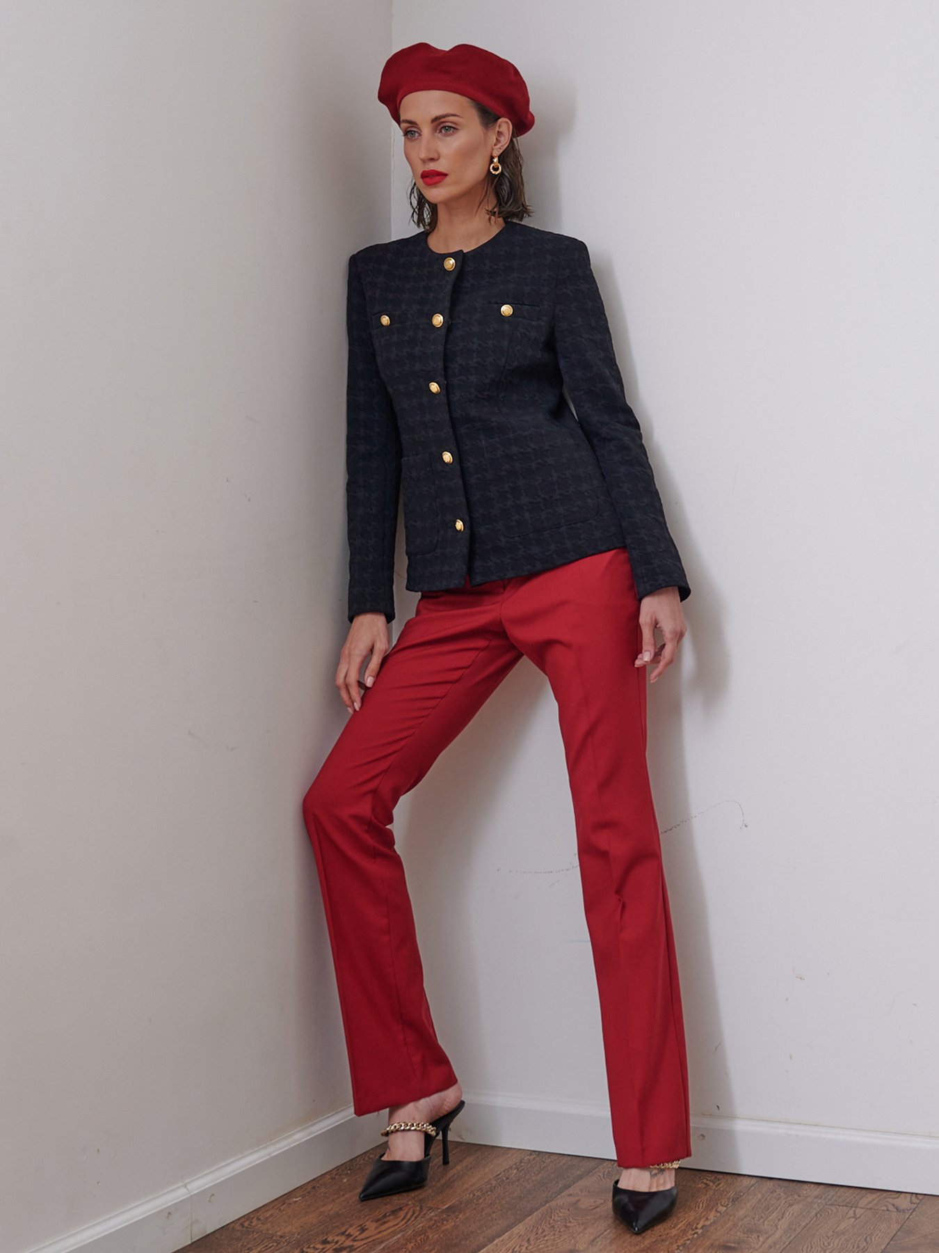Бордовые брюки клёш