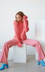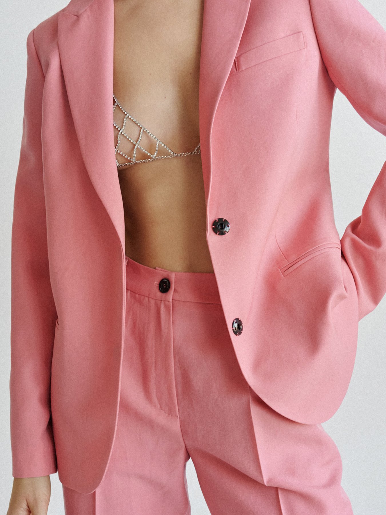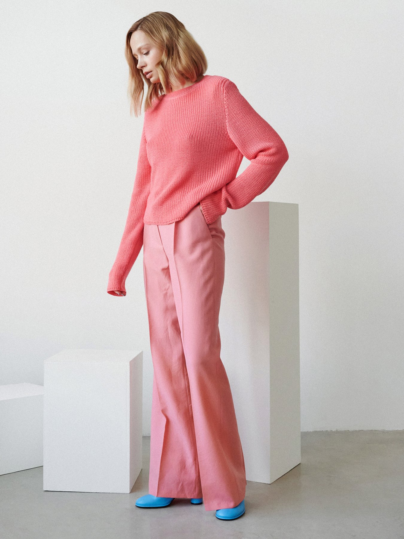 Прямые брюки из шерстяной крэшированой ("жатка") костюмной ткани кораллового оттенка