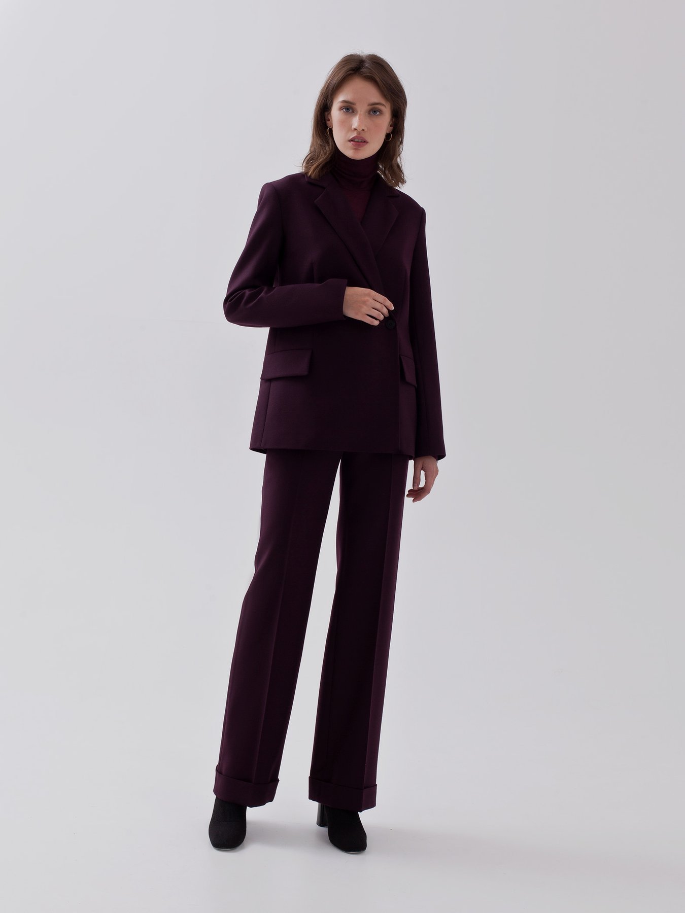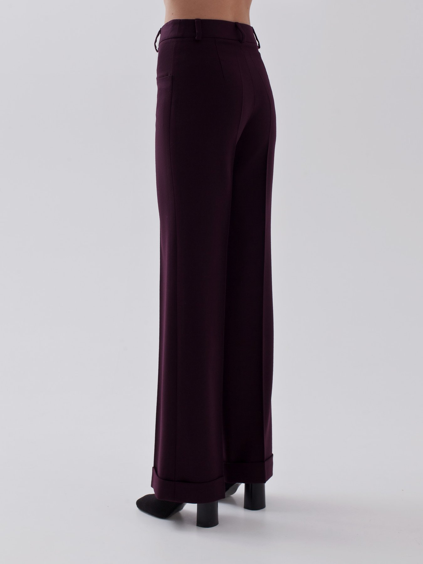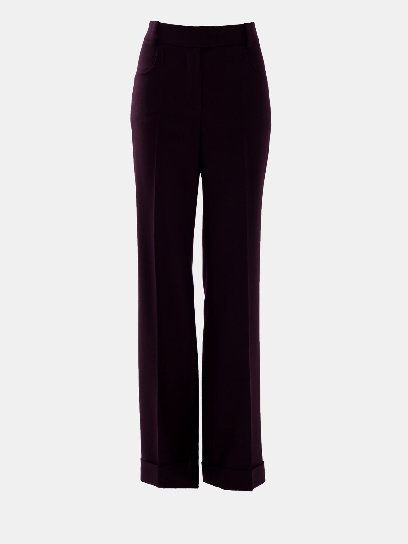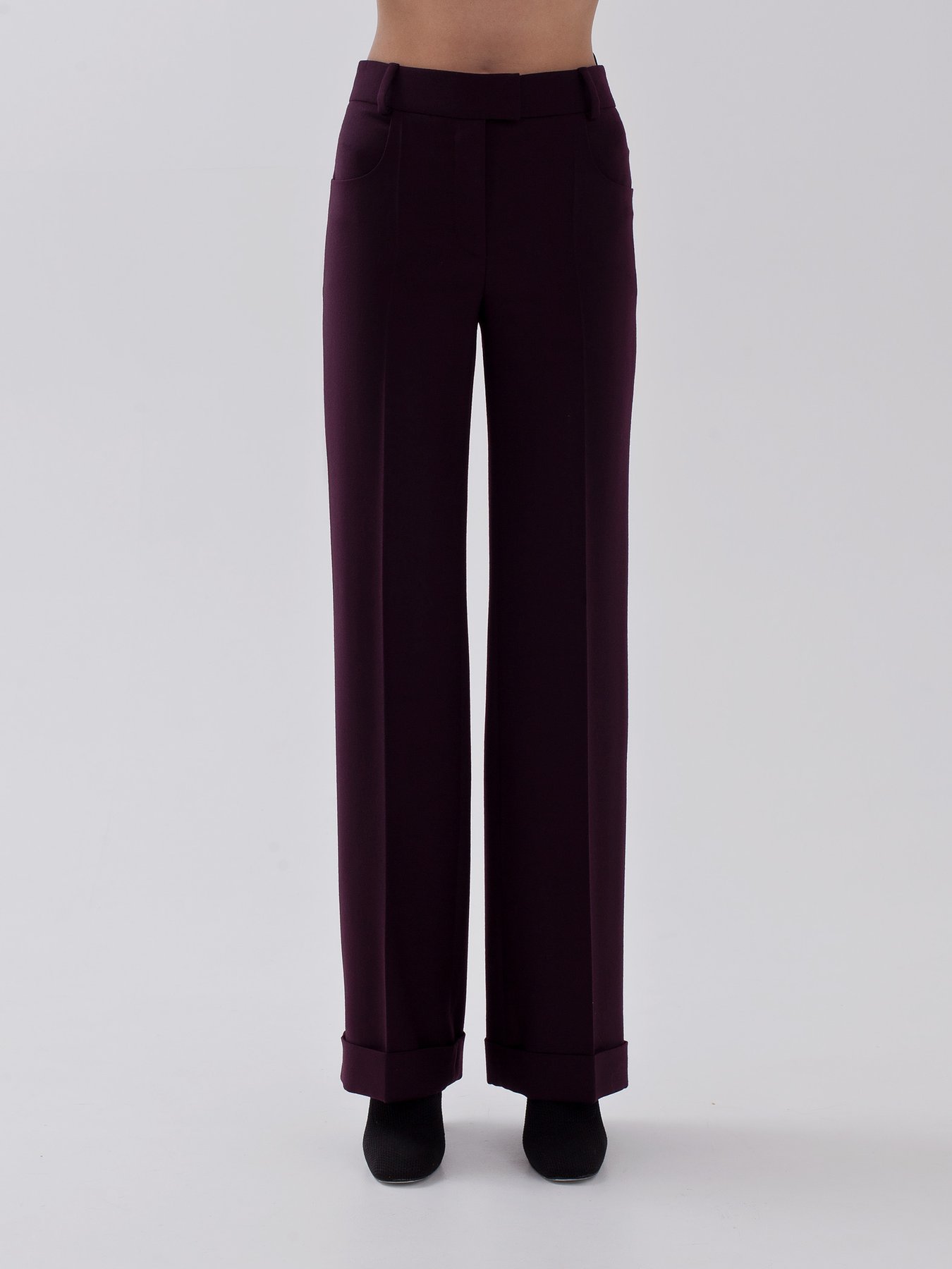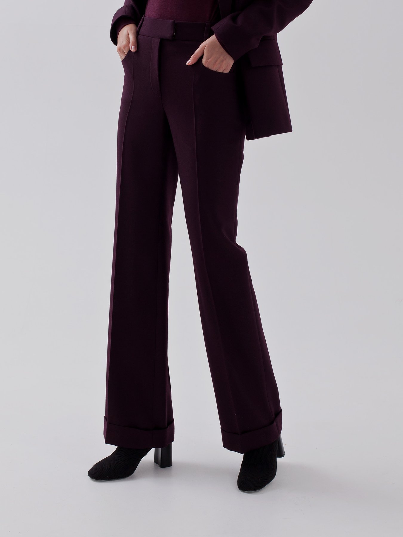 Прямые брюки со стрелками из костюмной шерсти оттенка Biking Red. Модель с чуть завышенной талией и отворотами внизу.