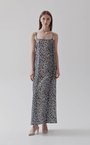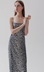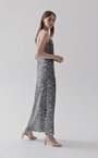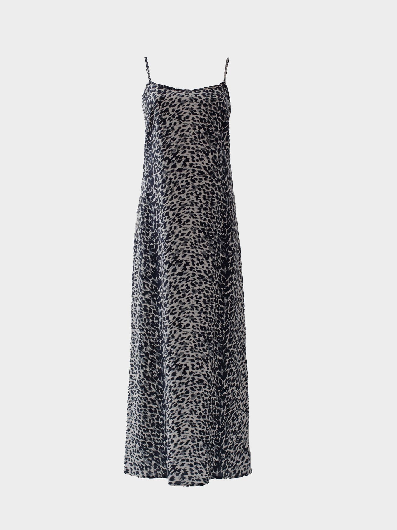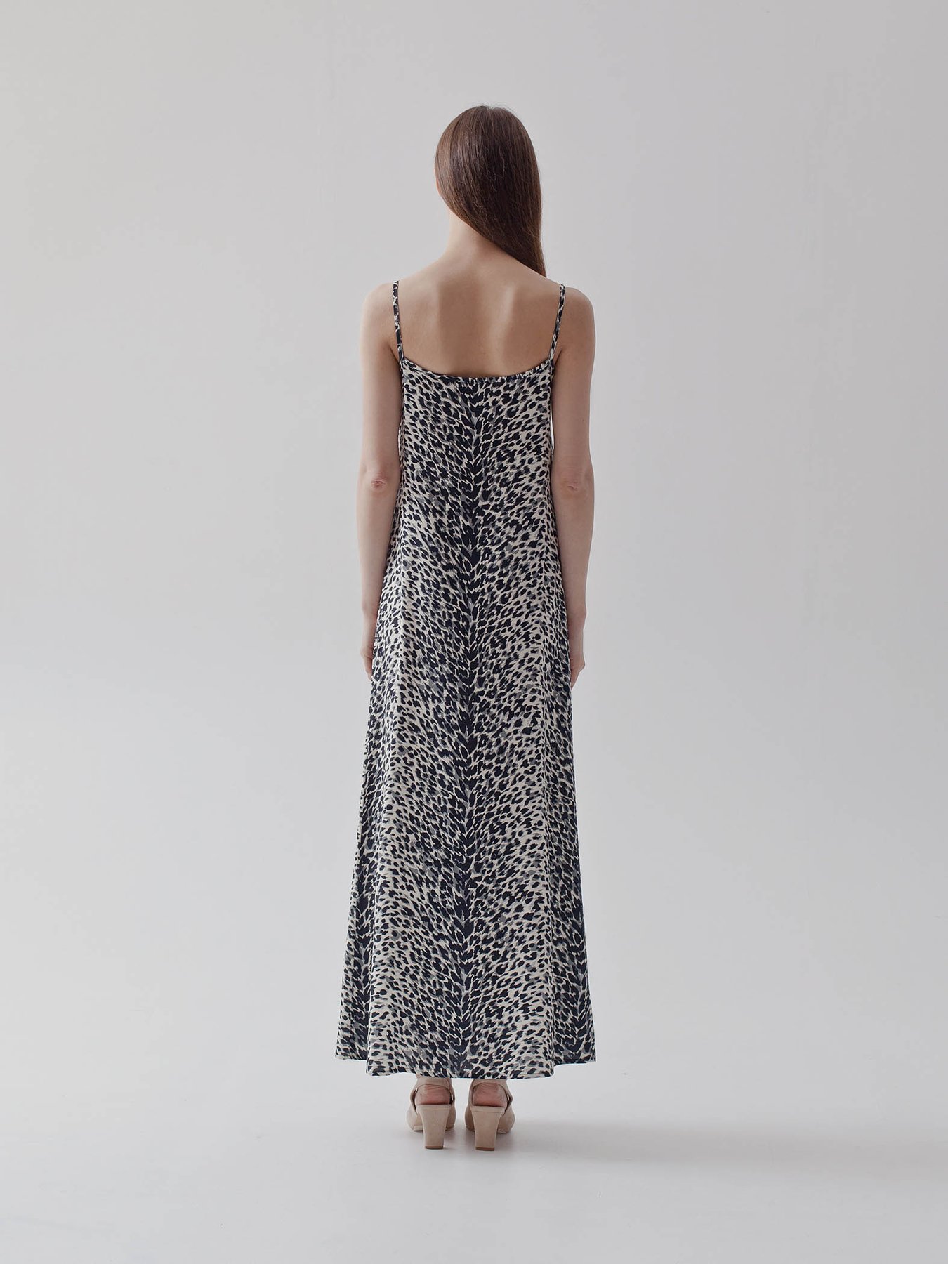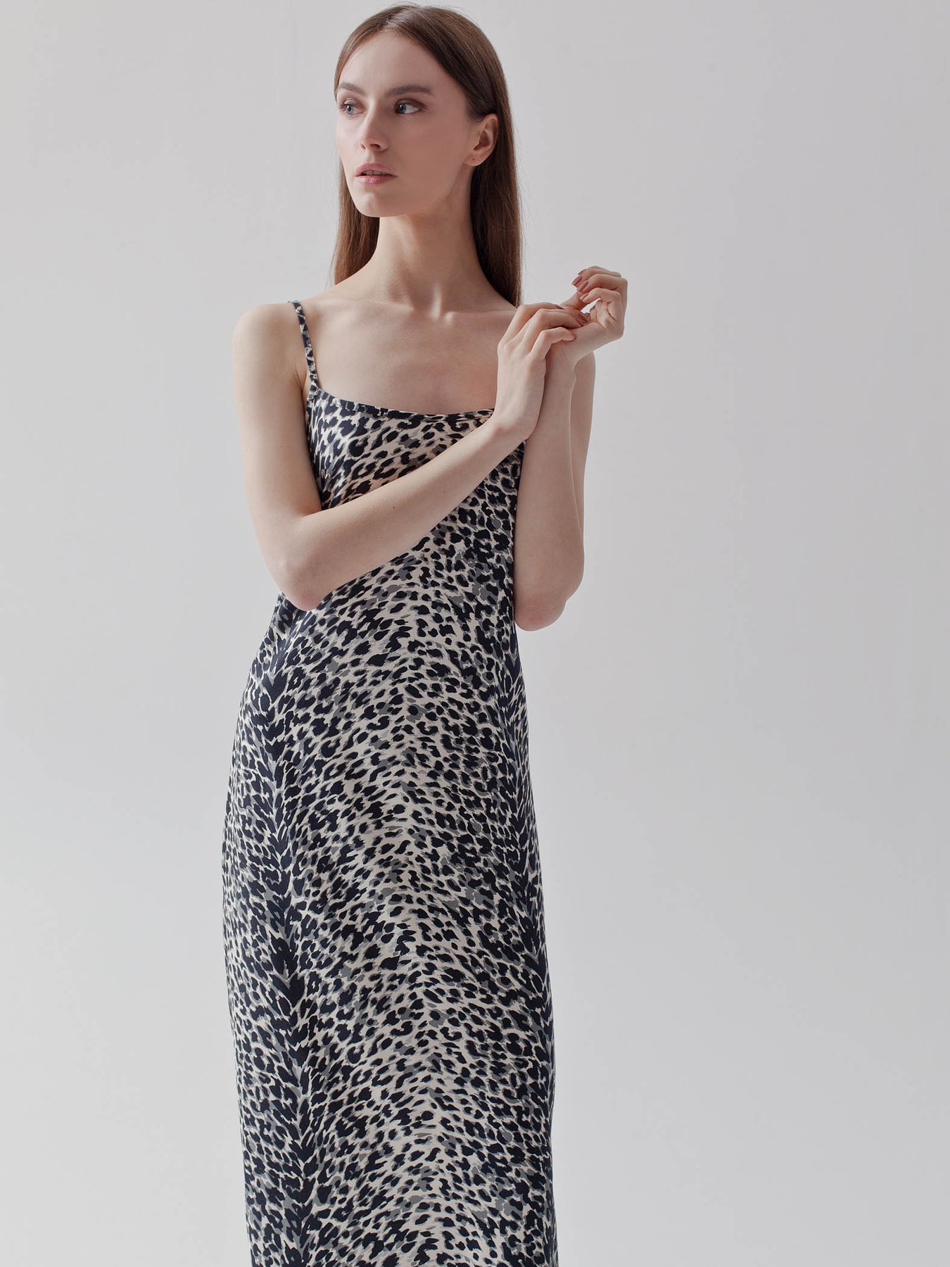 Платье-комбинация миди длины из вискозной ткани со звериным принтом. Модель с боковым разрезом.