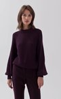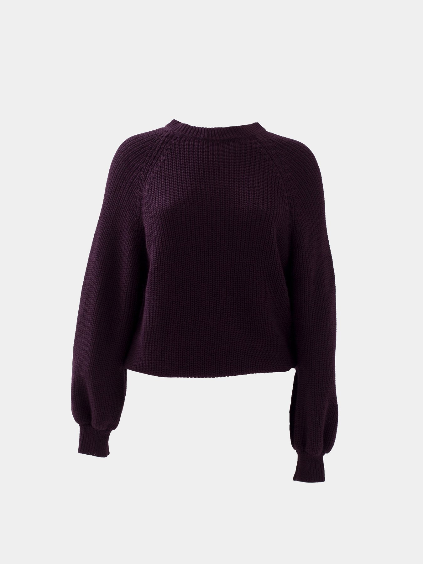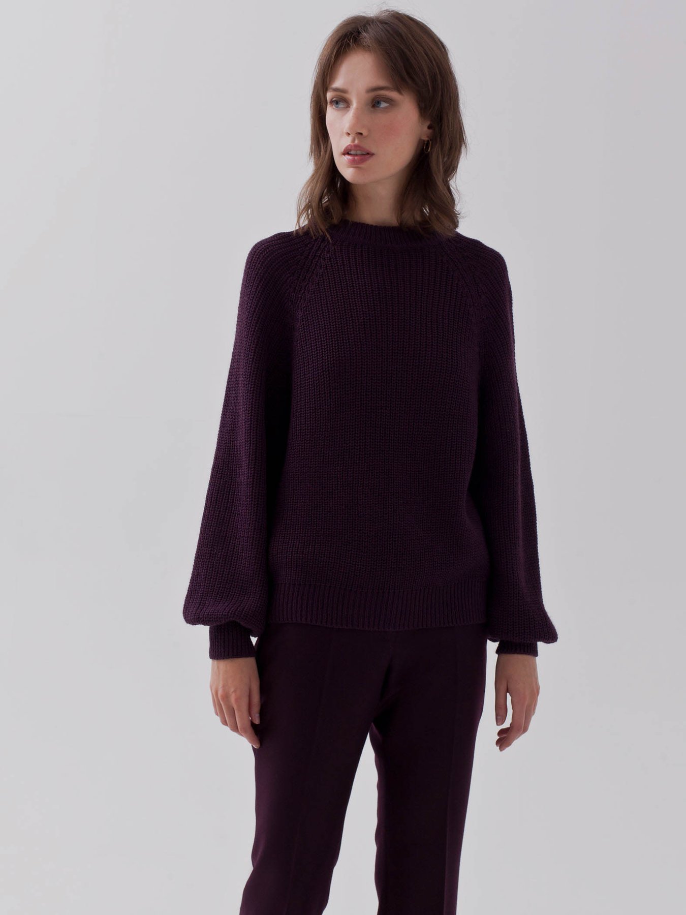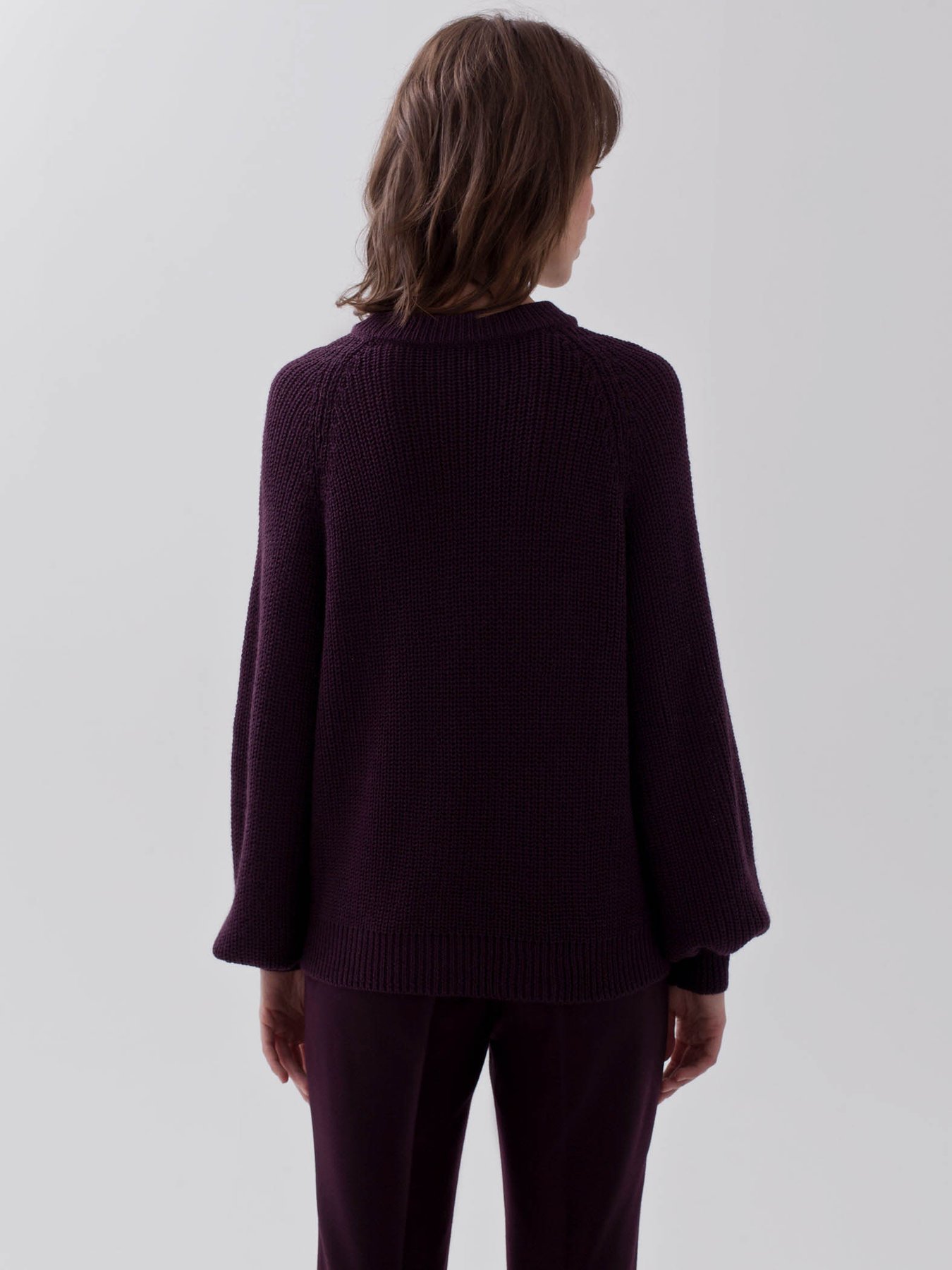 Джемпер с рукавом фонарик из смесовой шерстяной пряжи бордового оттенка.
