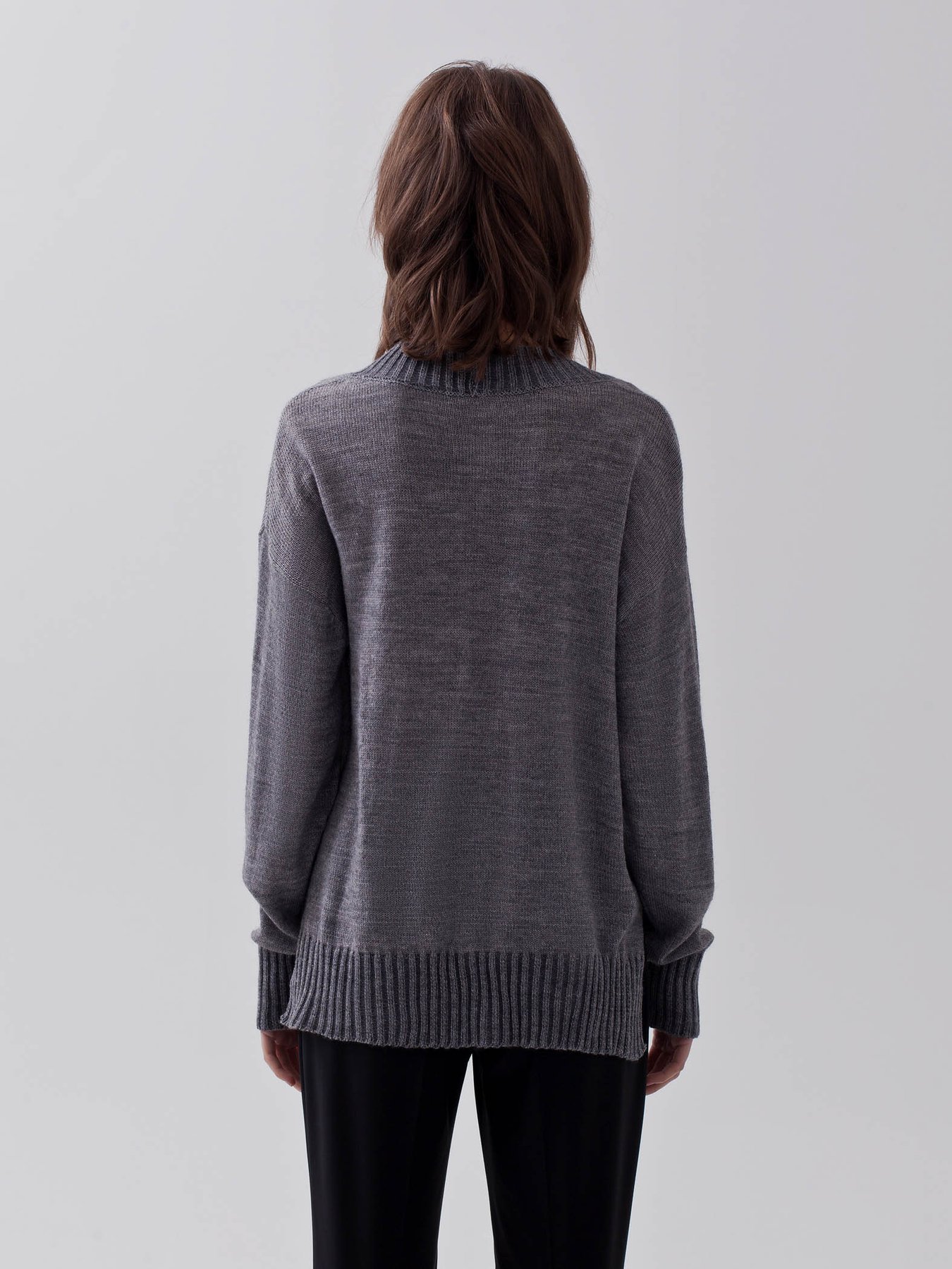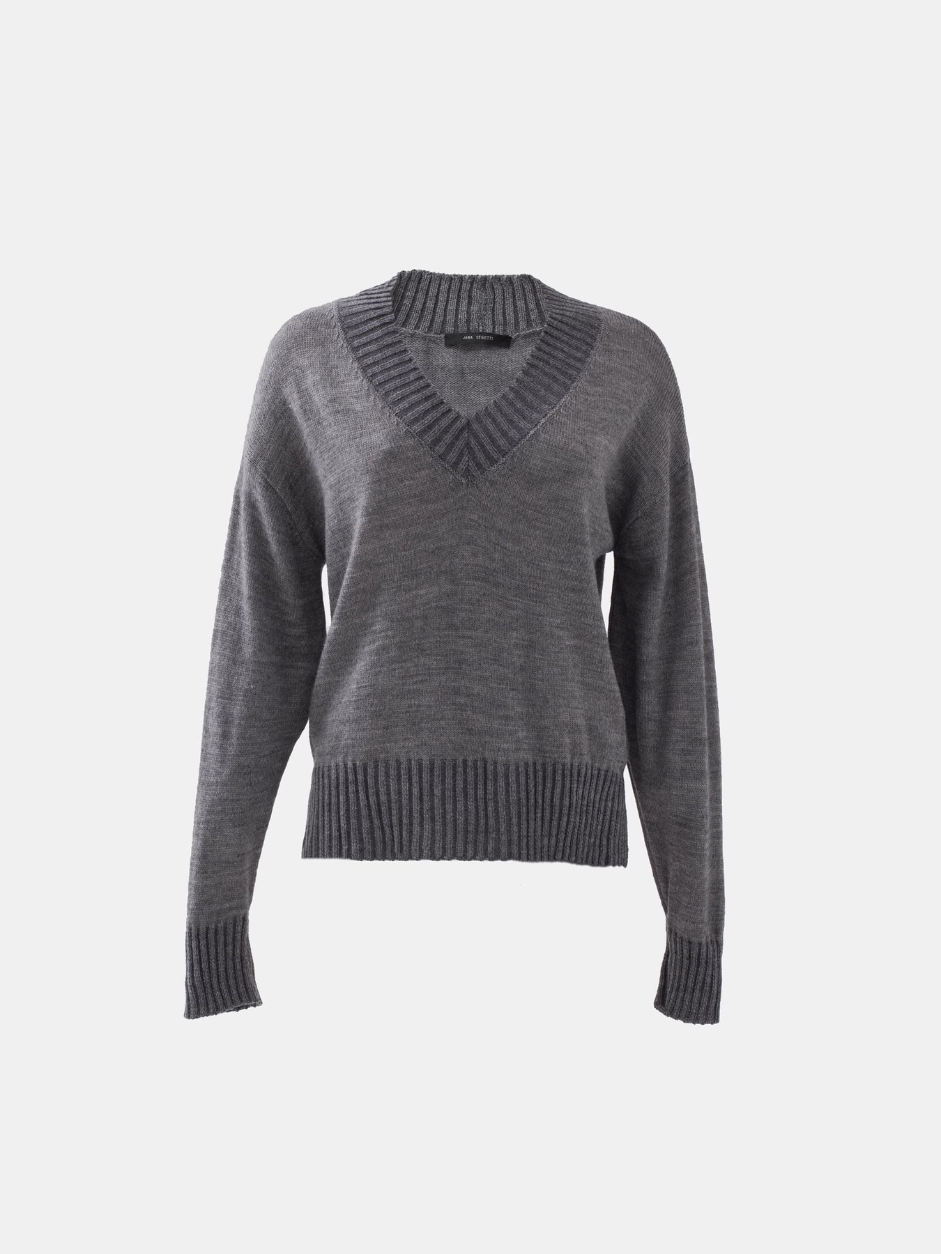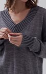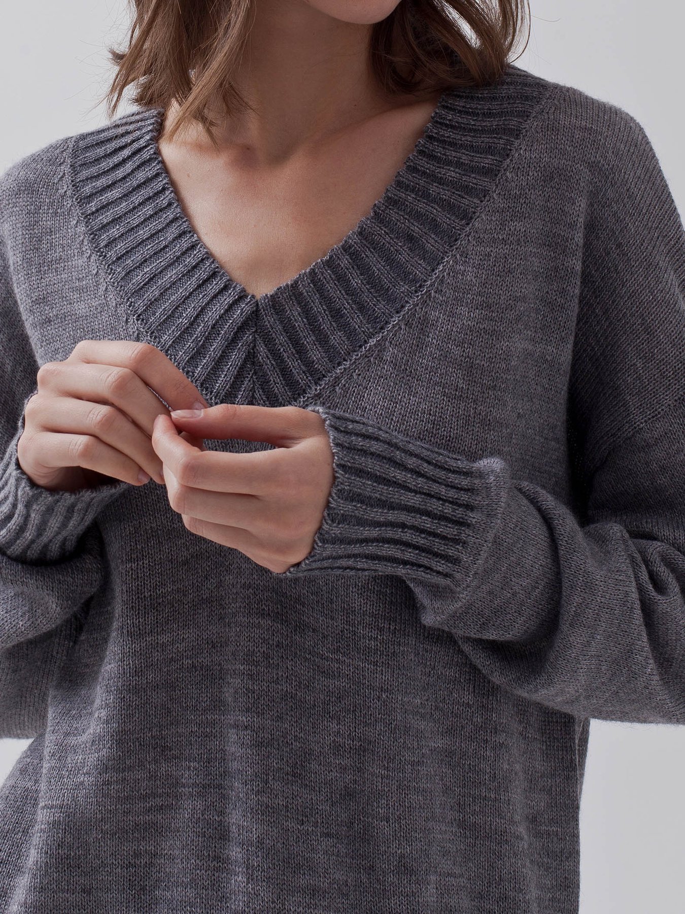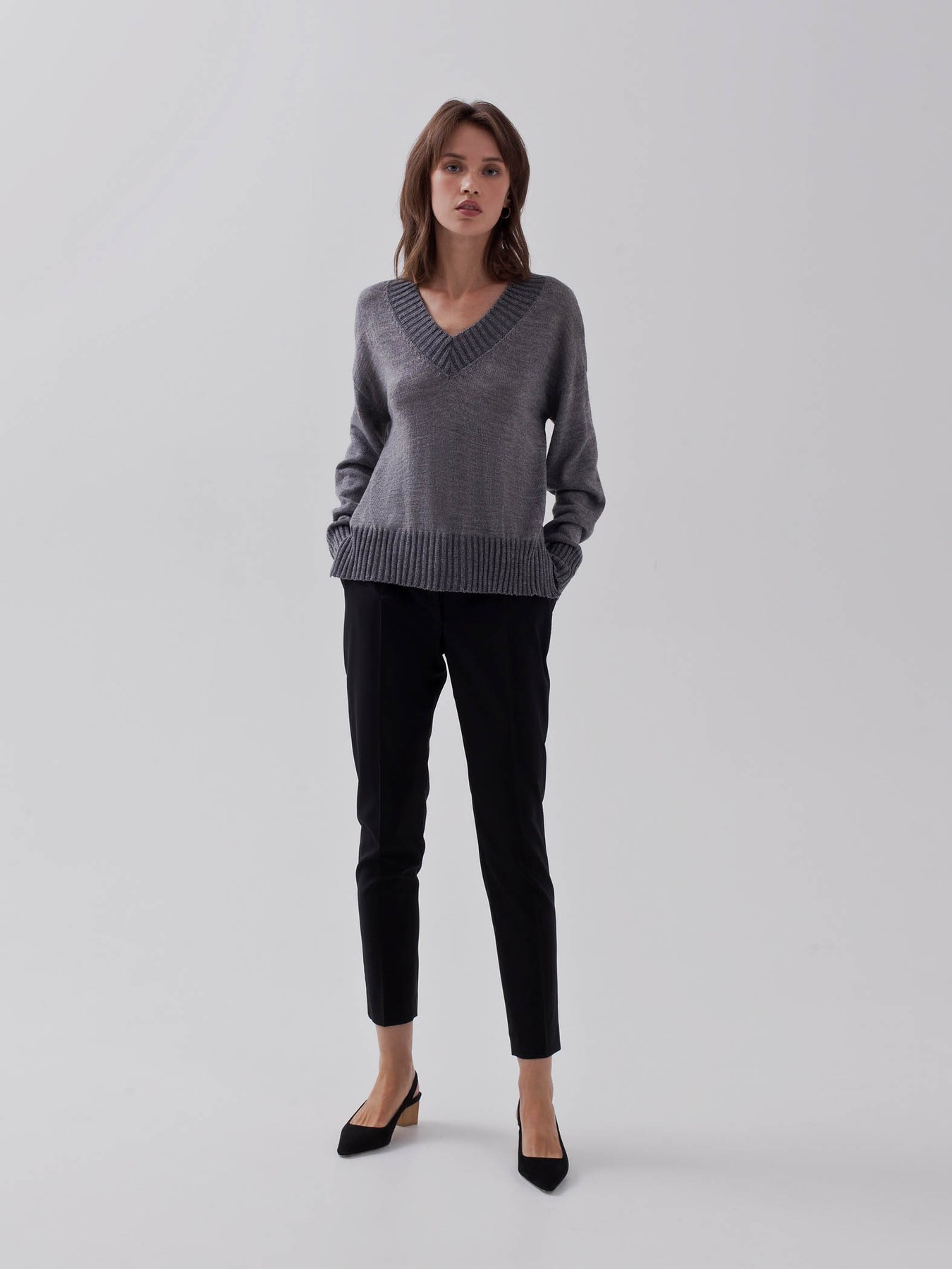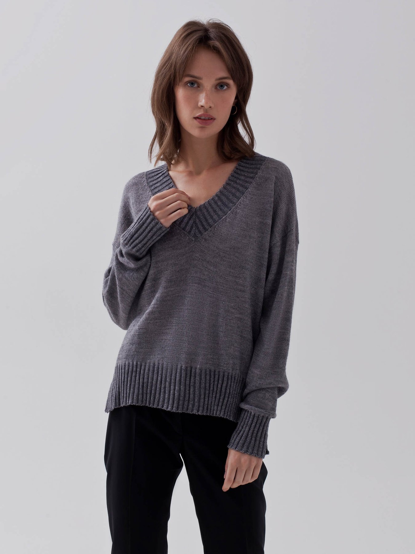 Джемпер с V-образным воротом. Изделие темно-серого оттенка