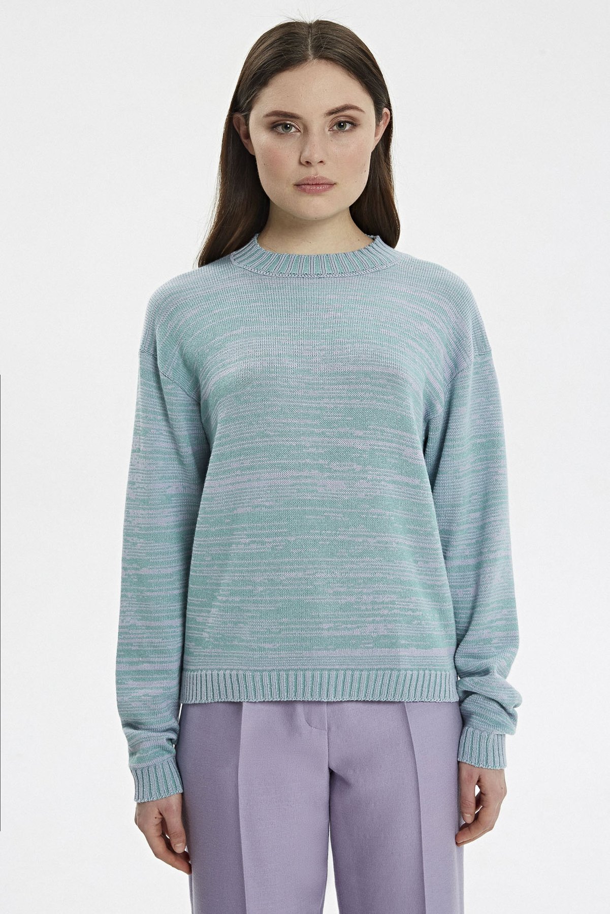 Свободный джемпер из вискозного трикотажа с добавлением шерсти сиренево-бирюзового оттенка