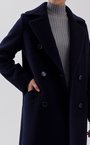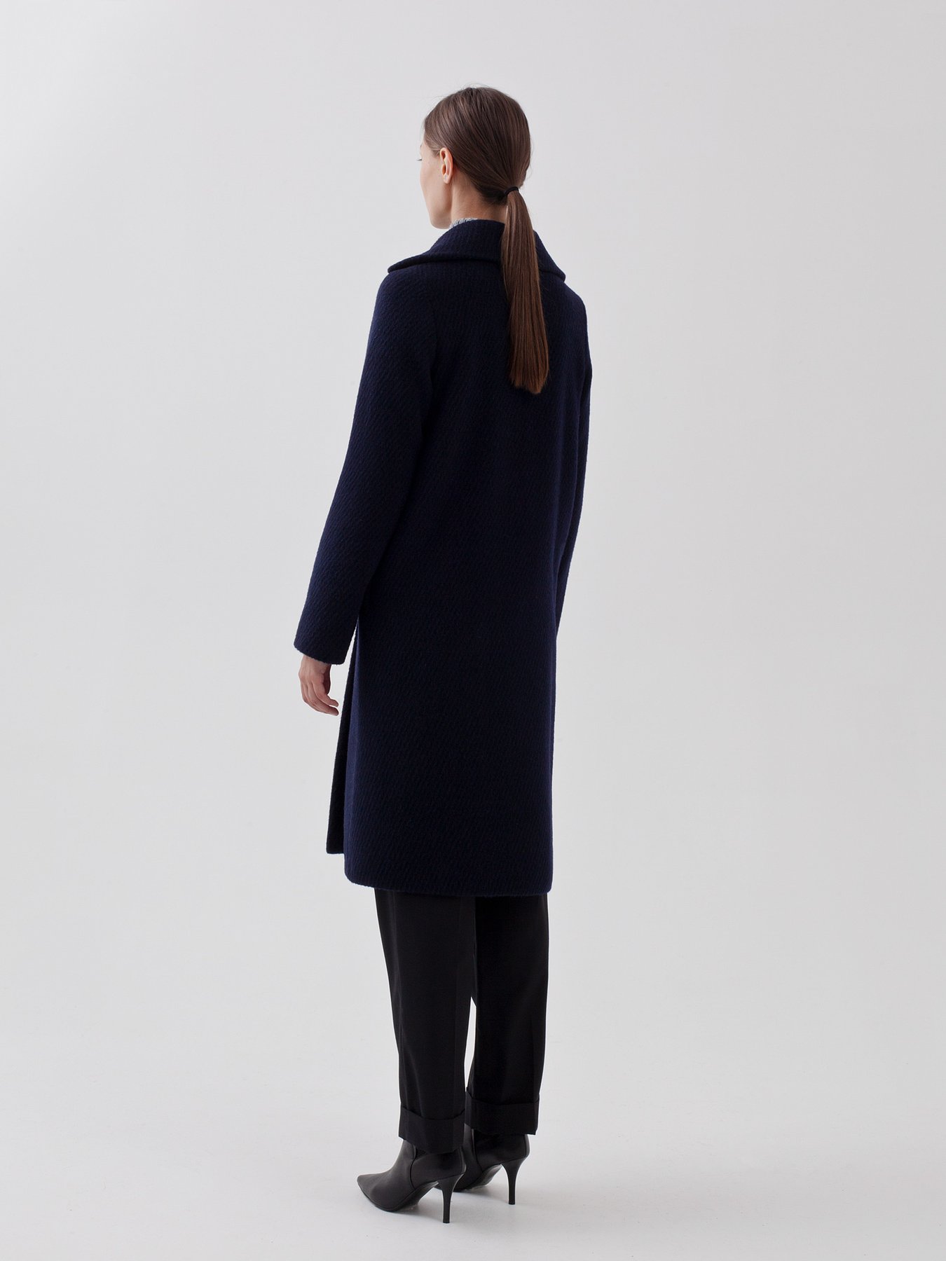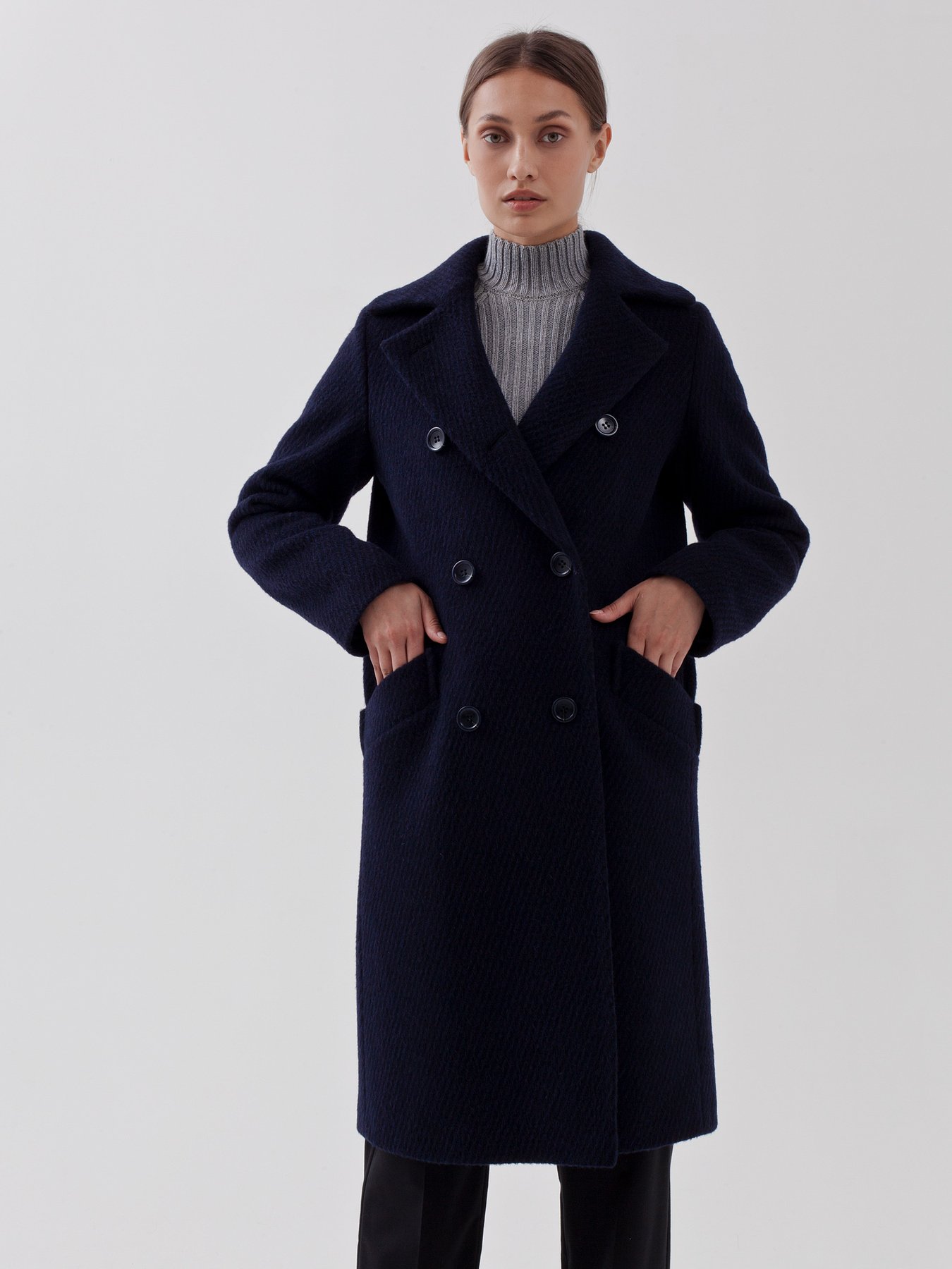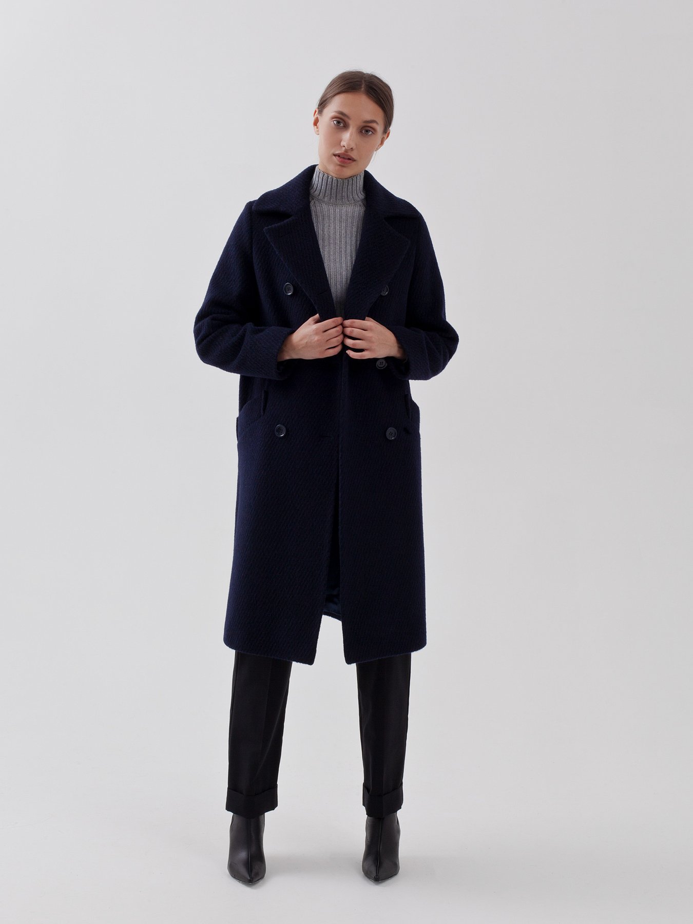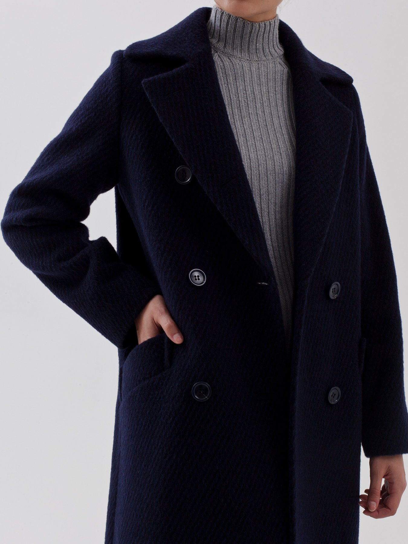 Двубортная модель с застежкой на пуговицы. Пальтовая ткань из шерсти альпаки с добавлением верджинской шерсти. Теплый, легкий материал с приятной шелковистостью. Изделия из альпаки создают ощущения уникального эстетического и физического комфорта.