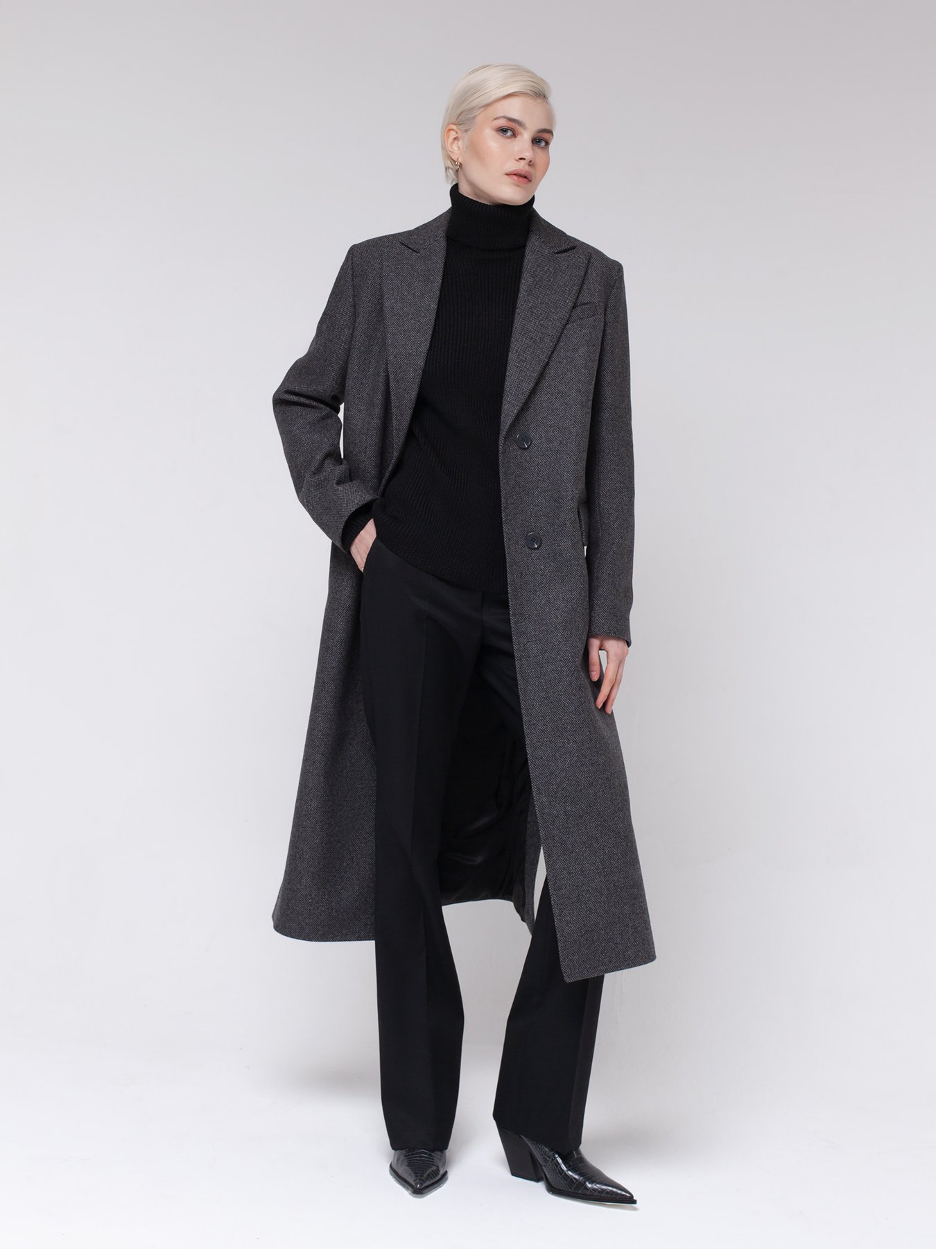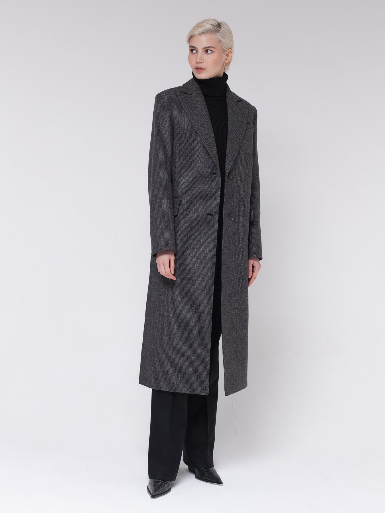 Темно-серое шерстяное однобортное пальто с боковыми разрезами