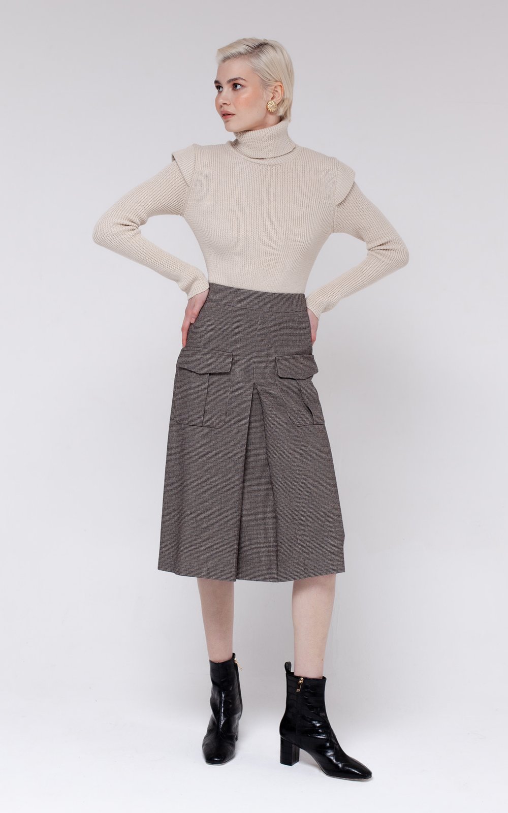 Свитер плотной вязки с высоким воротом. Прилегающее изделие с декоративными крылышками на плечах