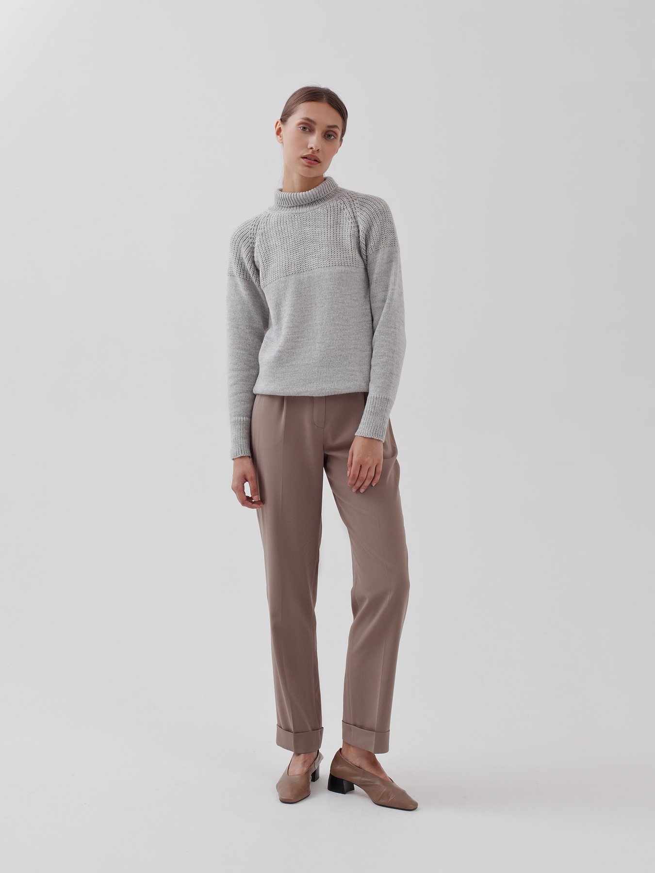 Свитер серого оттенка с высоким воротом из смесовой шерсти