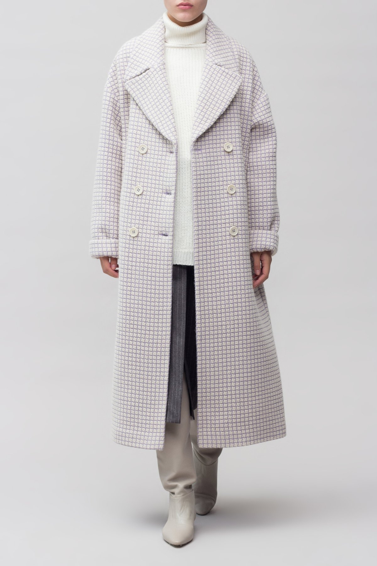 Объемный свитер молочного оттенка, рукав-реглан, высокий ворот. Изделие выполнено из мягкой итальянской пряжи.