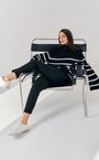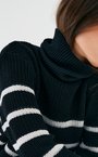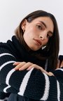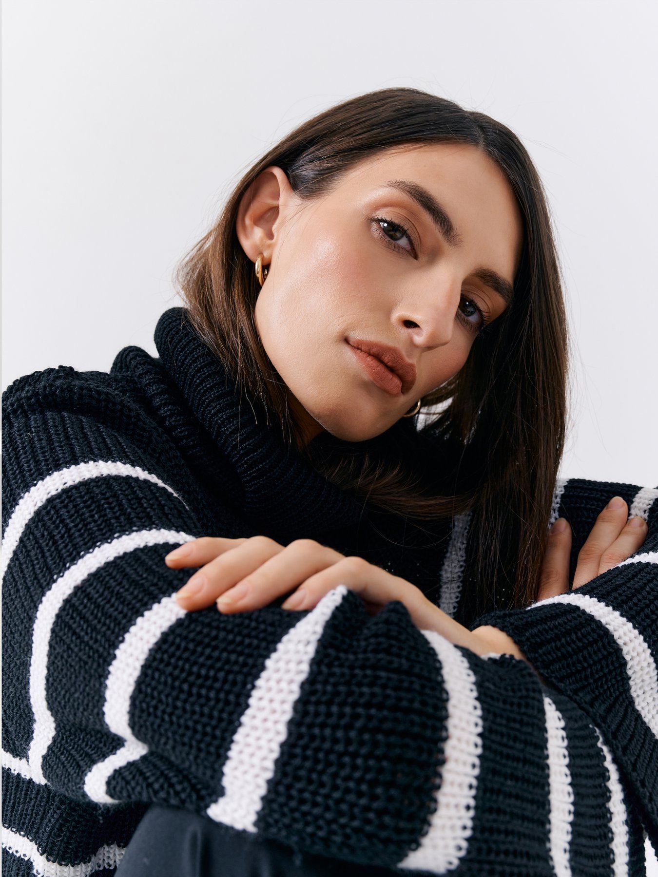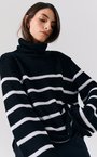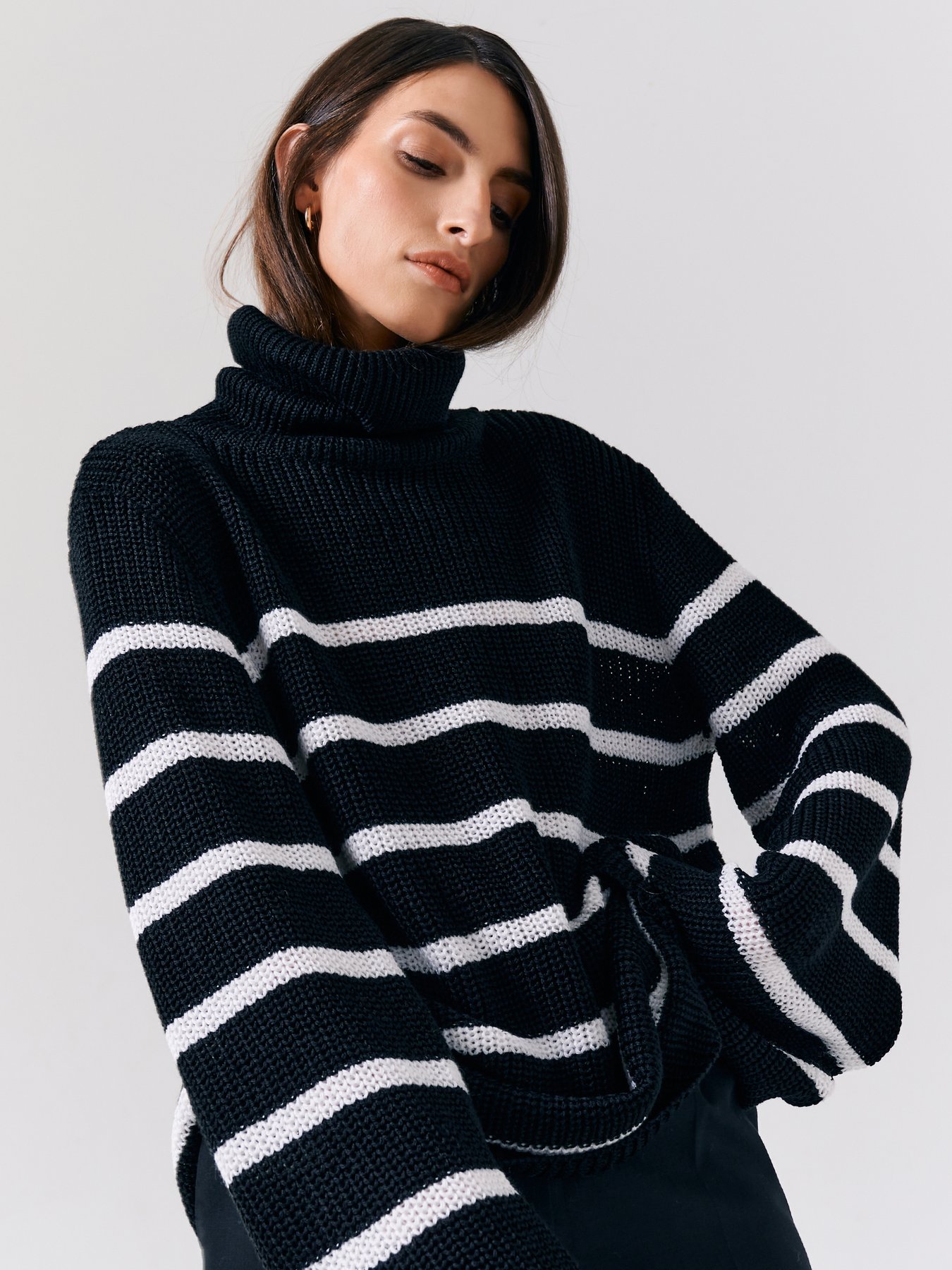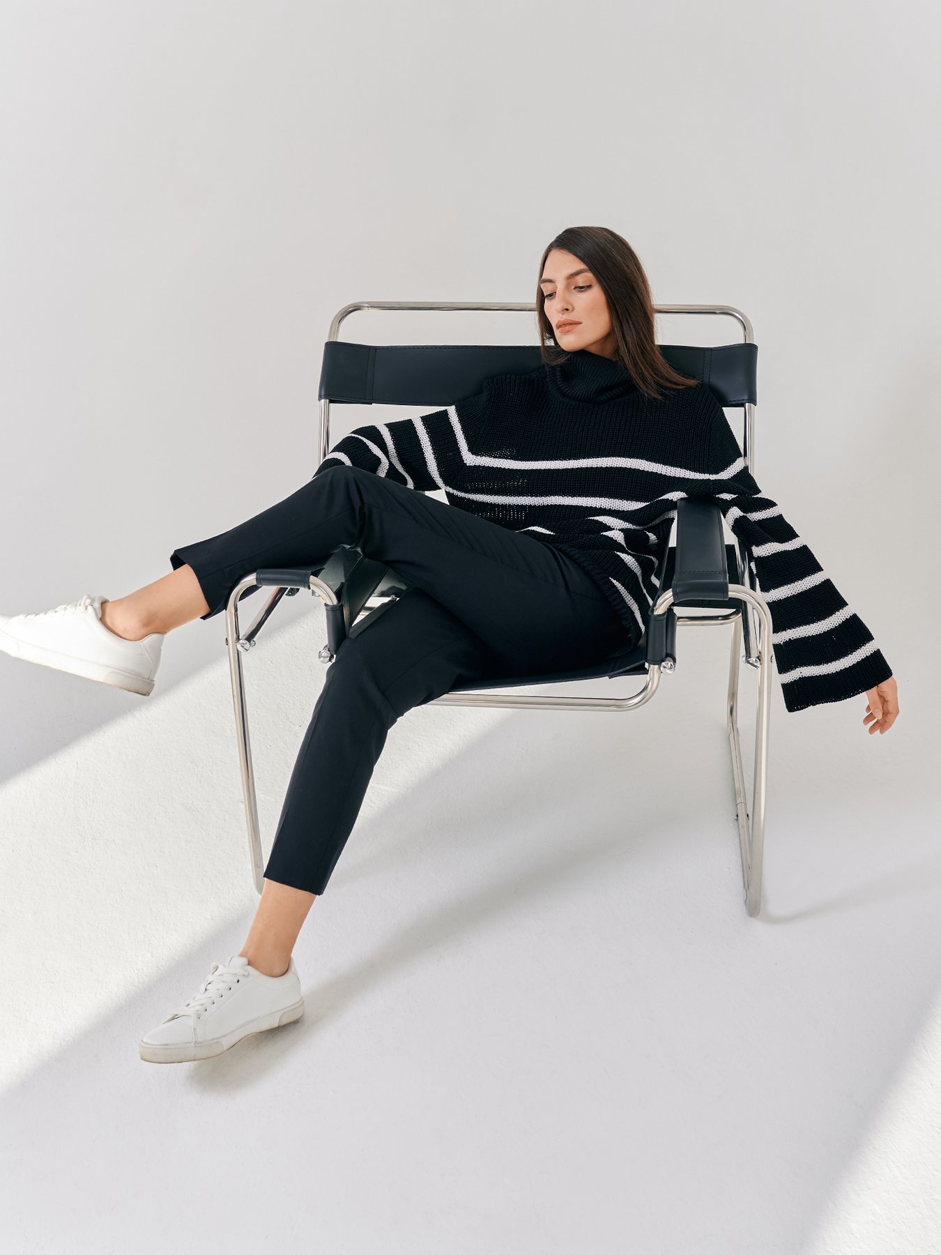 Свободный свитер в контрастную черно-белую полоску, чуть расклешенный рукав
