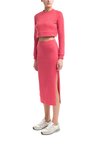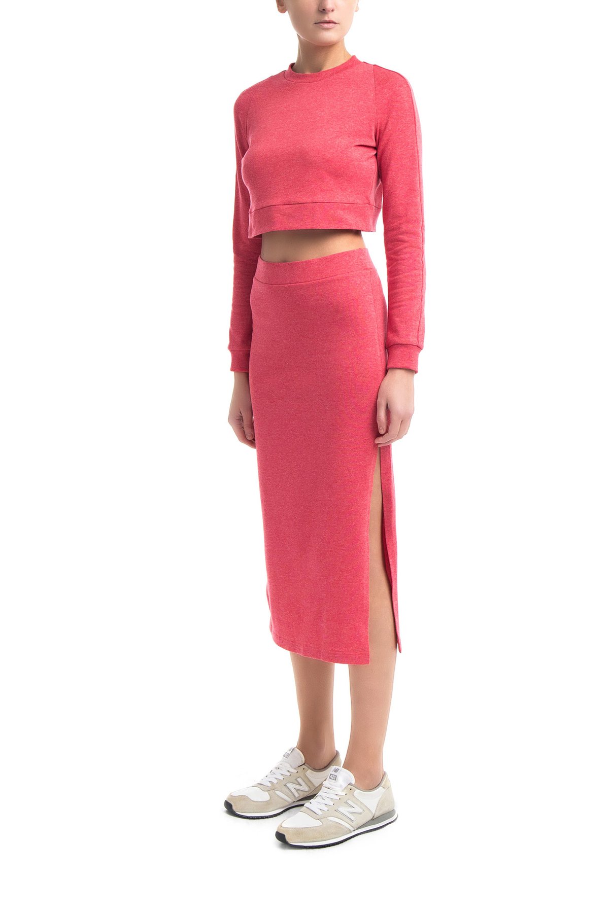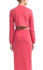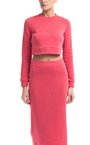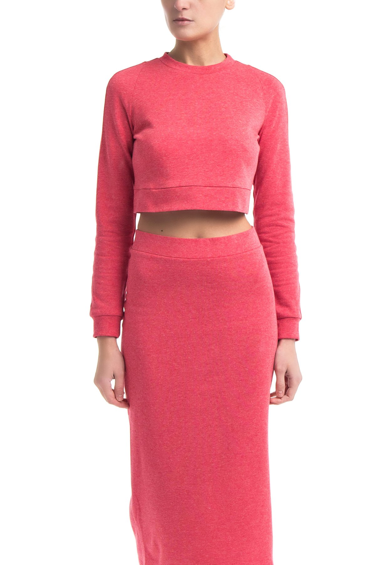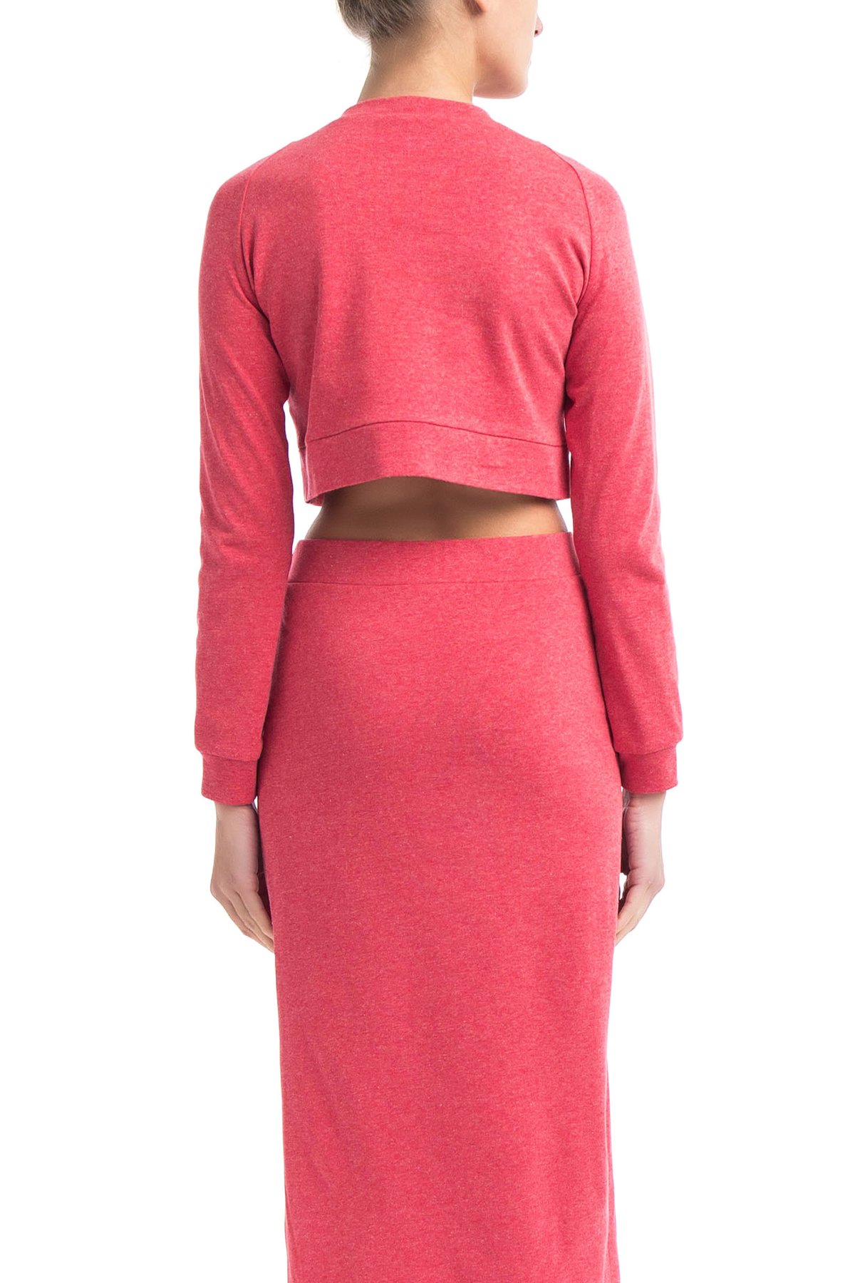 Кроп-топ из хлопка с добавлением пластан кораллового оттенка. Модель свободного силуэта с рукавами и углубленным вырезом на спине.