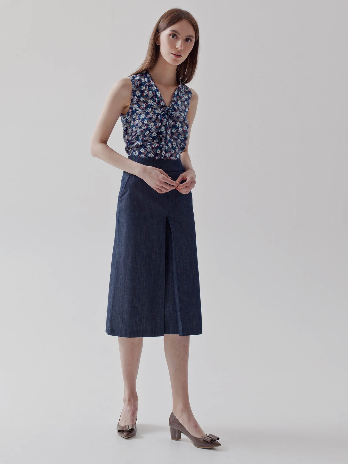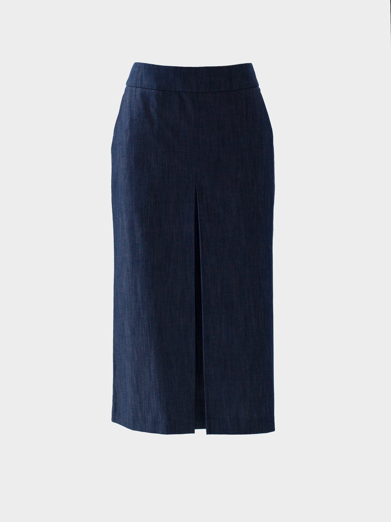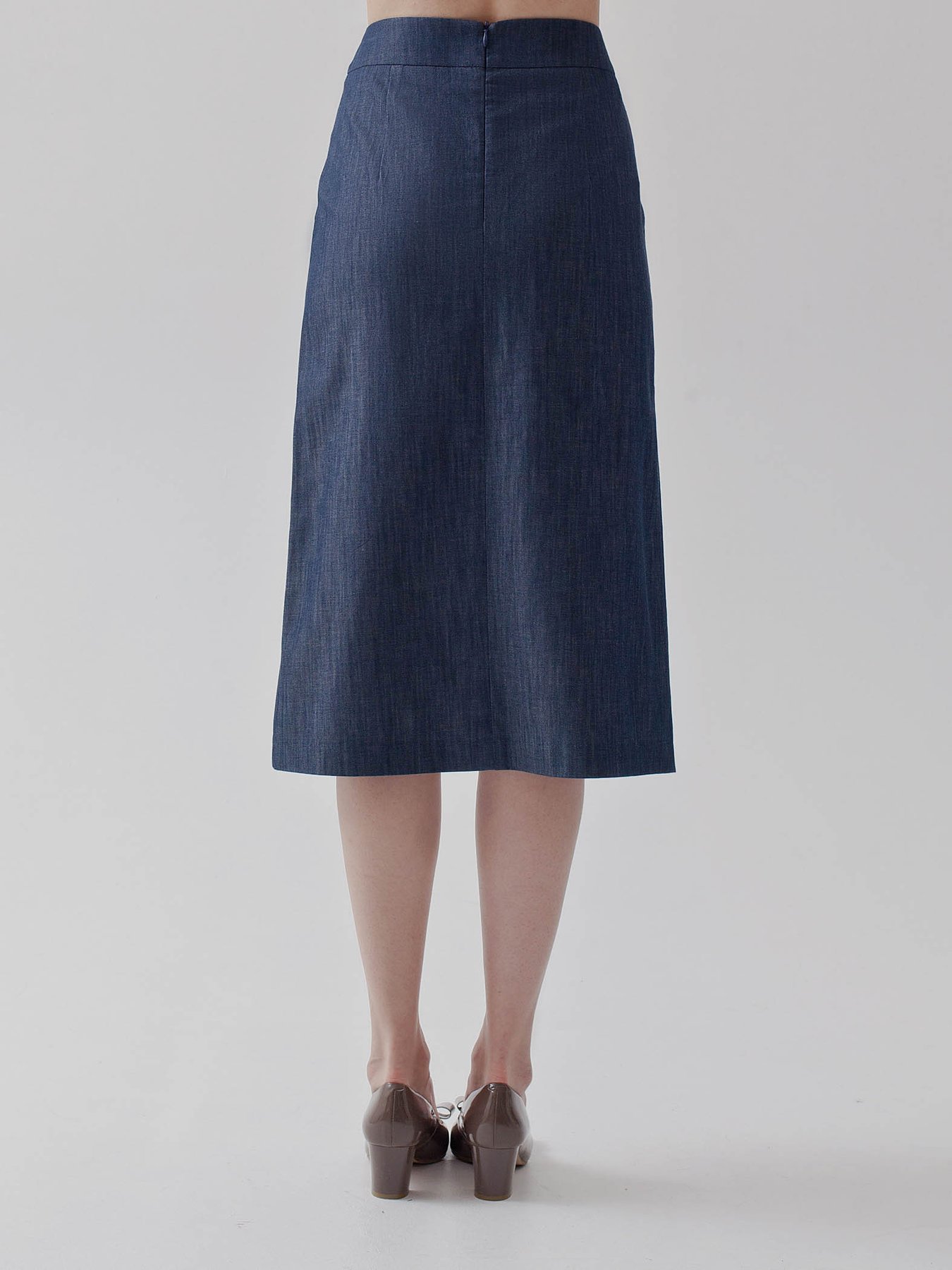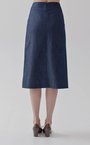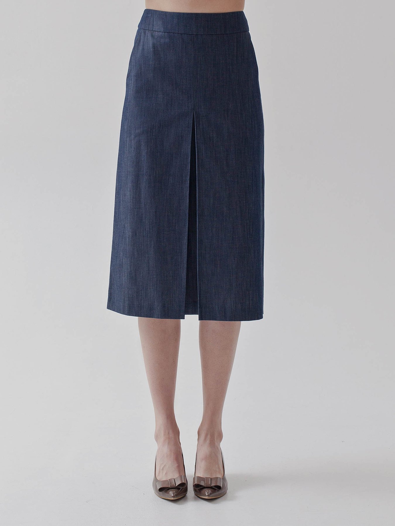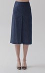 Юбка- миди из итальянской вискозной ткани оттенка деним. Модель со встречной складкой.