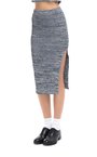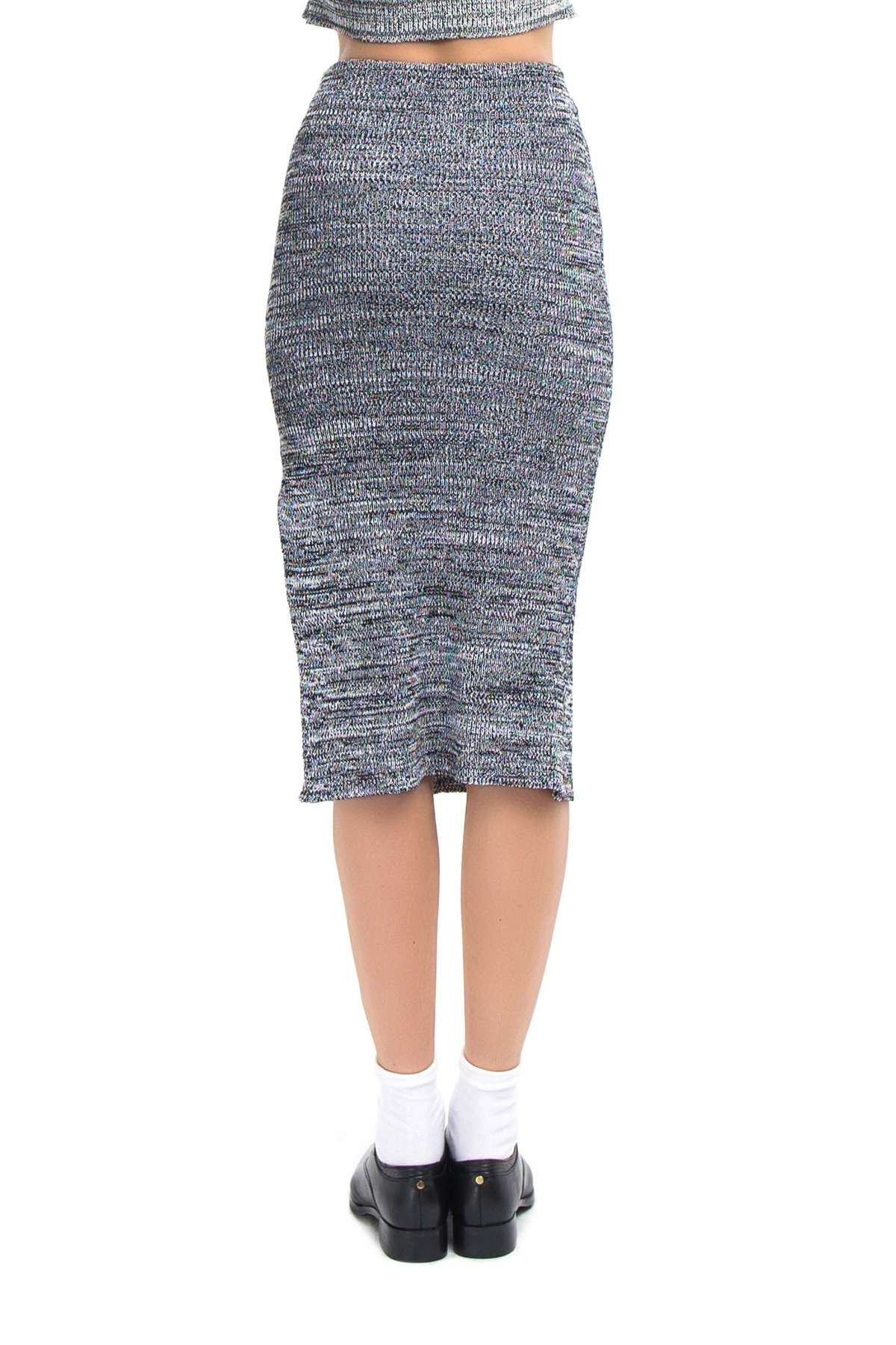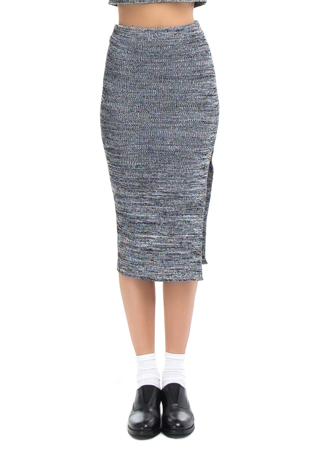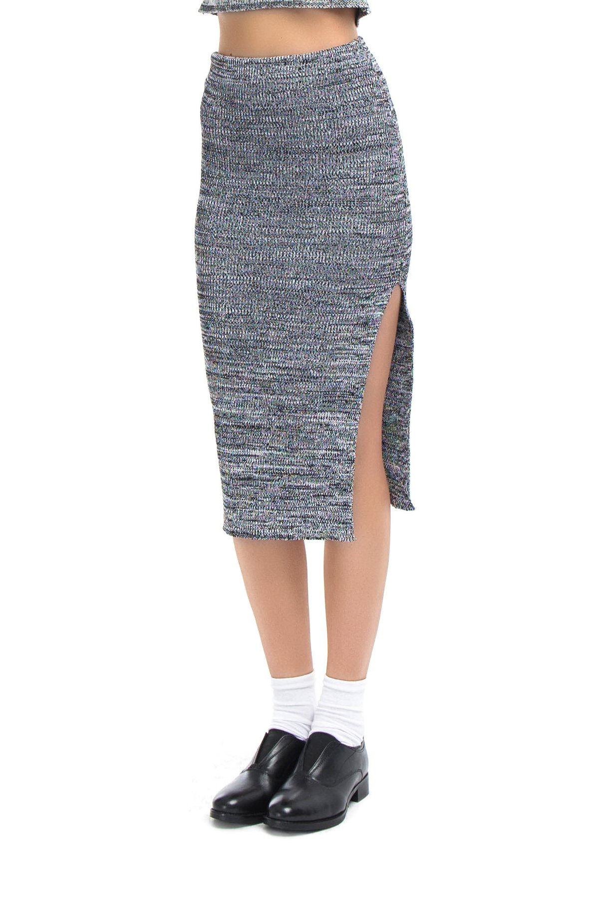 Трикотажная миди-юбка прилегающего силуэта с боковым разрезом.