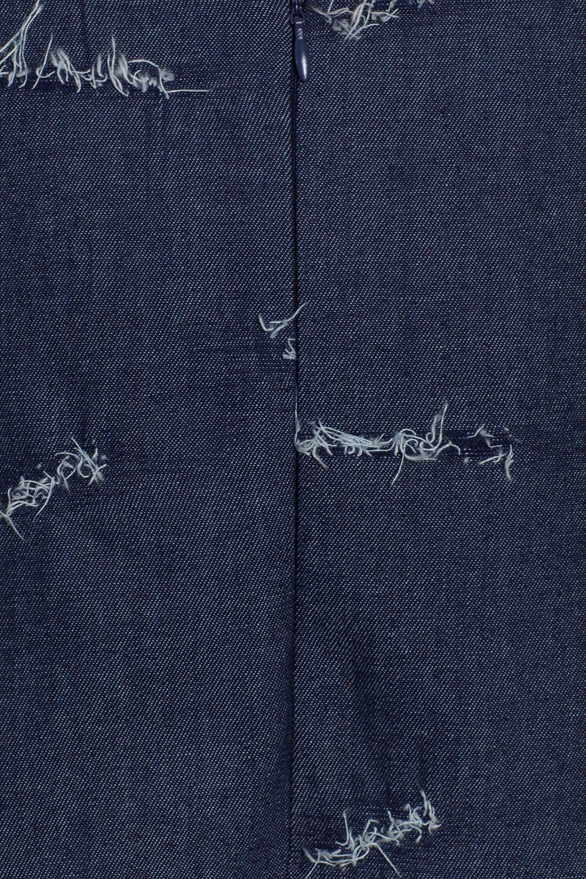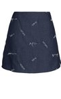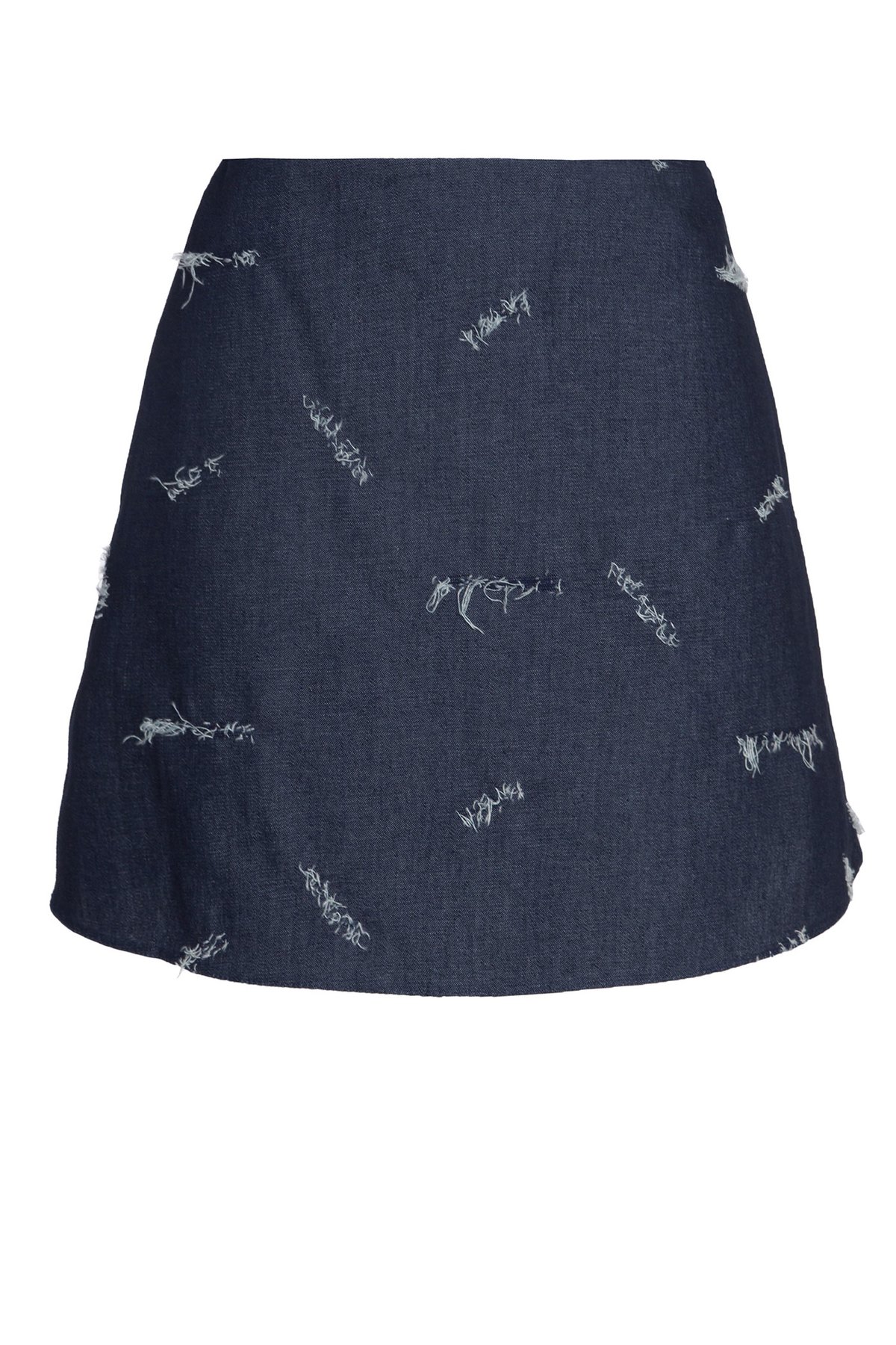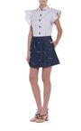Хлопковая мини-юбка из денима с декоративной отделкой. Изделие с застежкой на потайную молнию дополнено боковыми карманами.