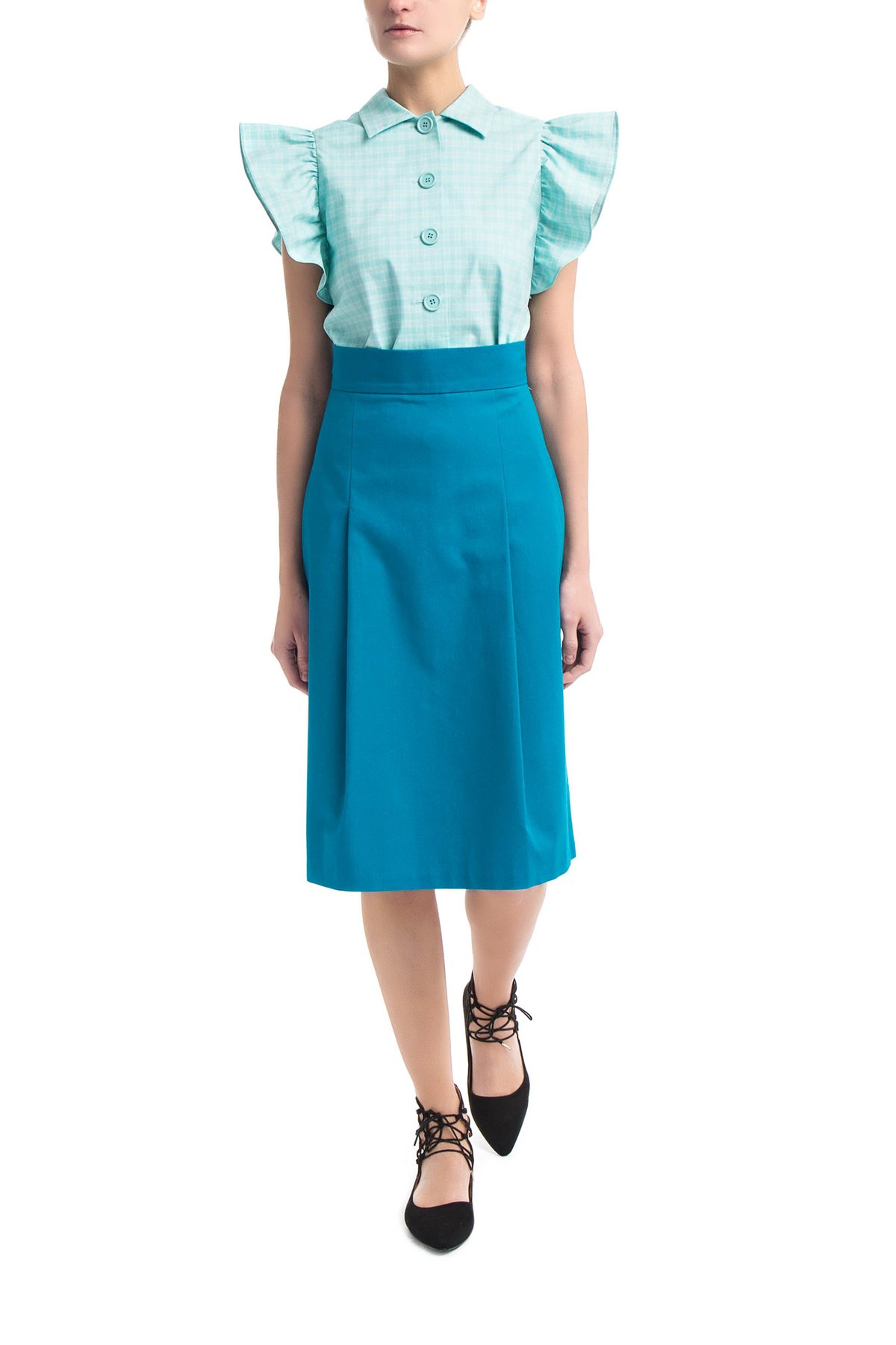Юбка из хлопка с добавлением эластана с высокой посадкой на талии.