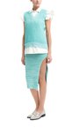 Миди-юбка из трикотажного хлопка с добавлением эластана бирюзового оттенка. Изделие облегающего силуэта с высоким боковым разрезом и посадкой на талии.