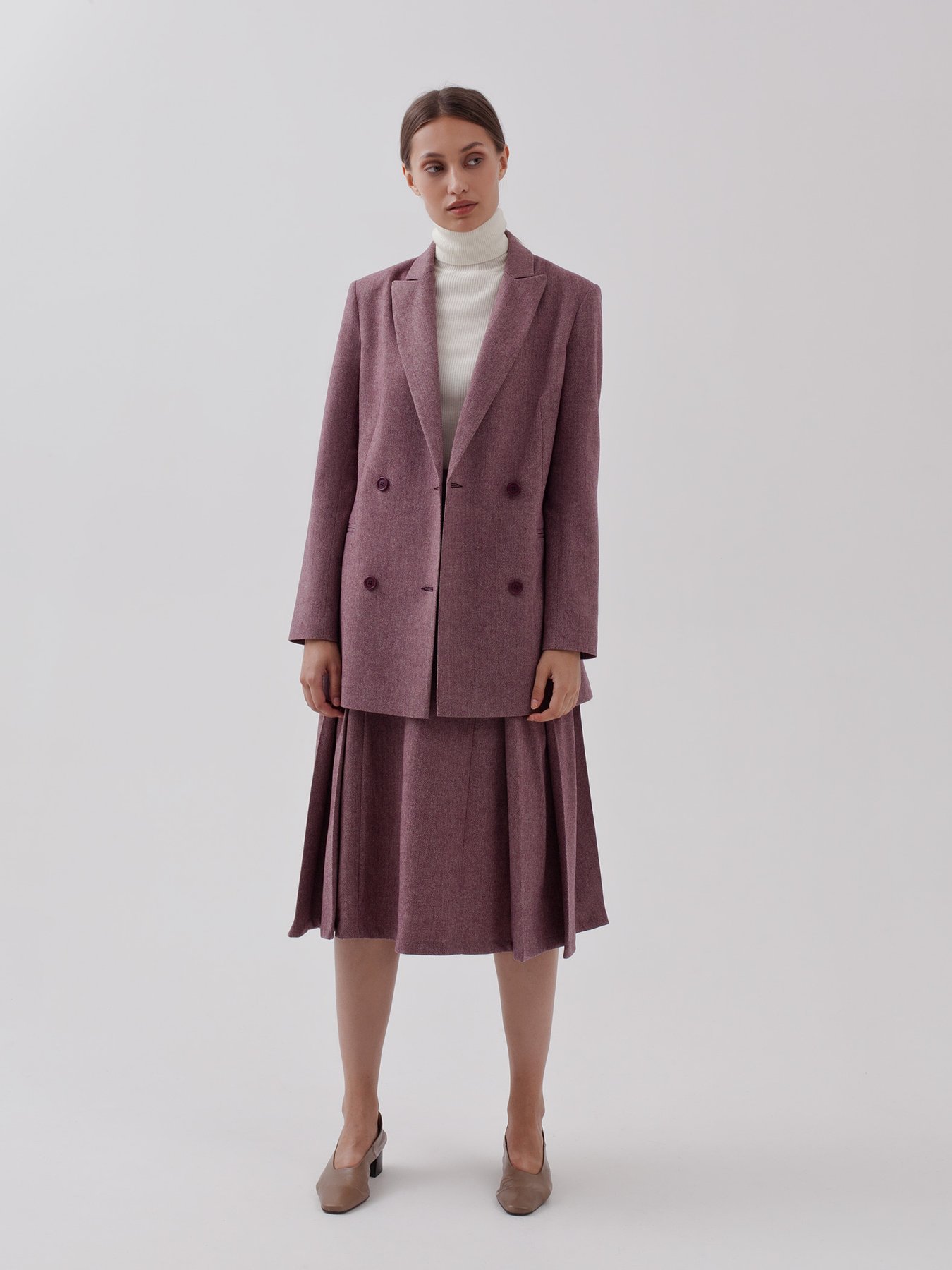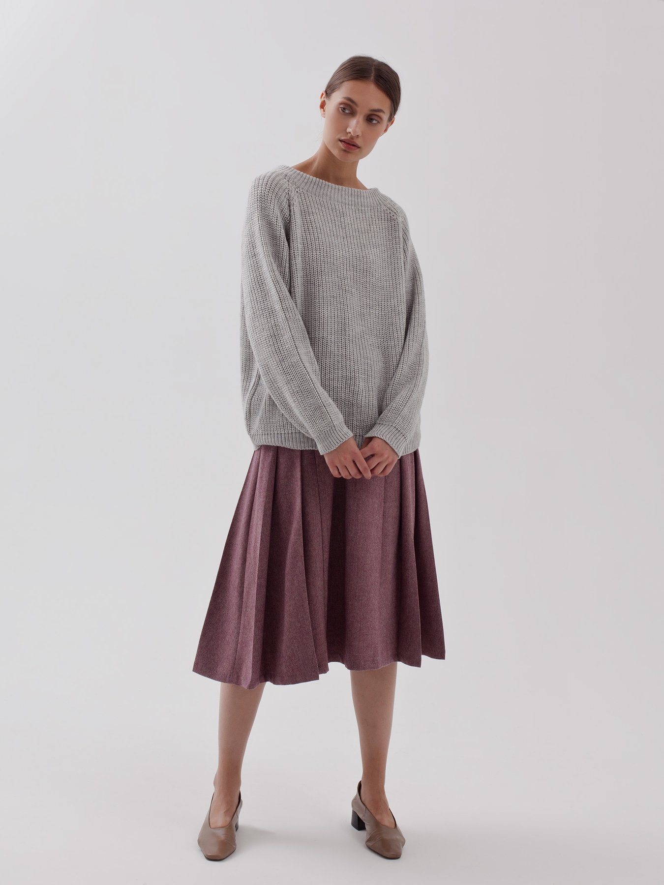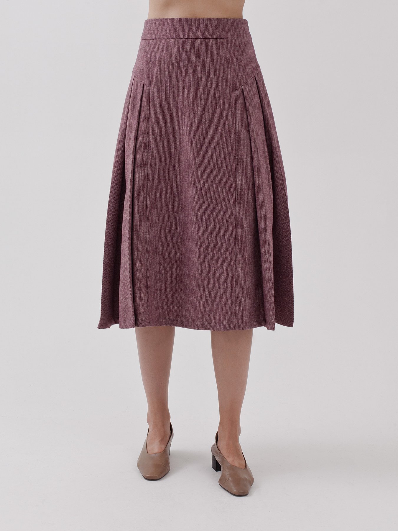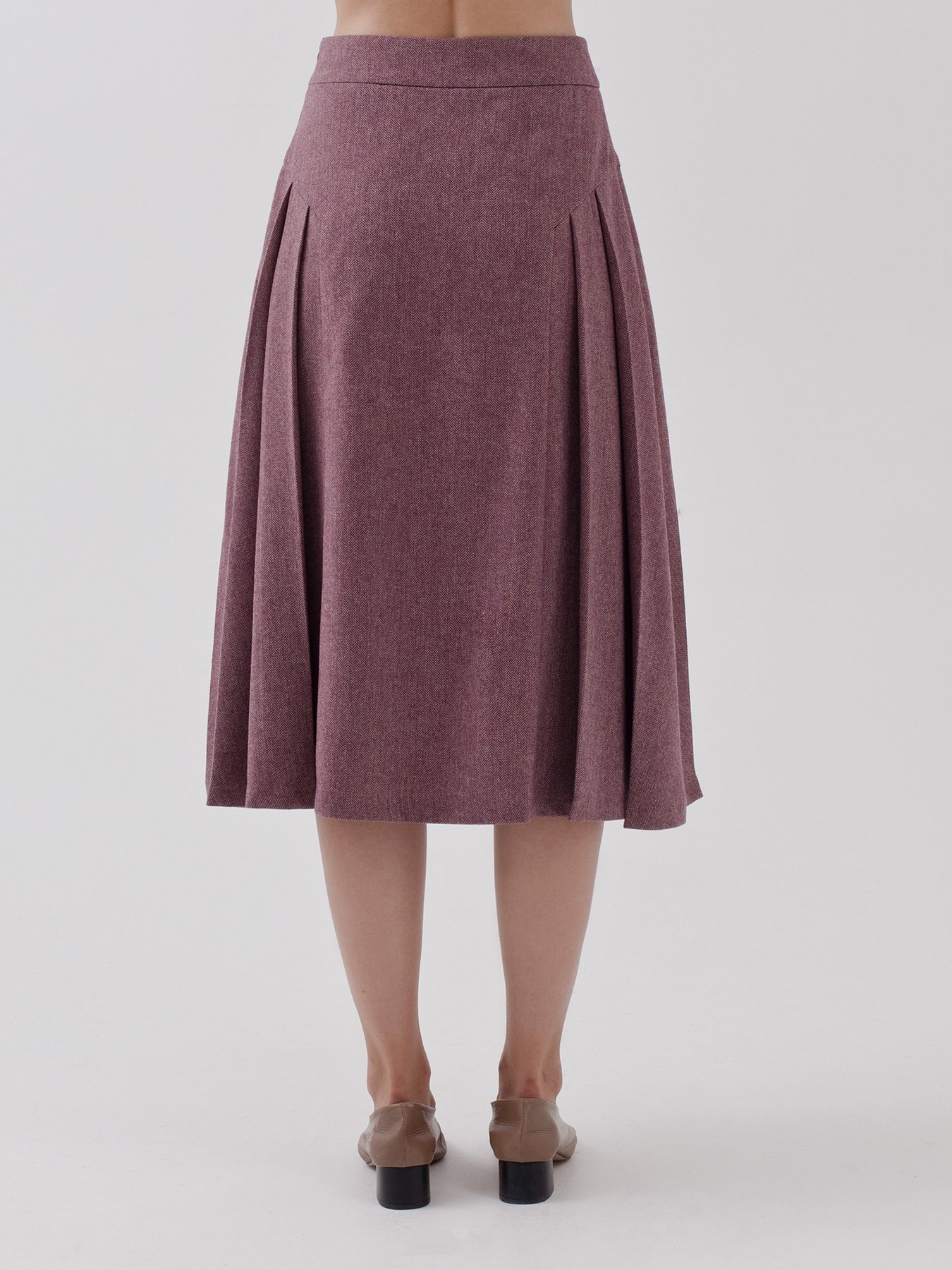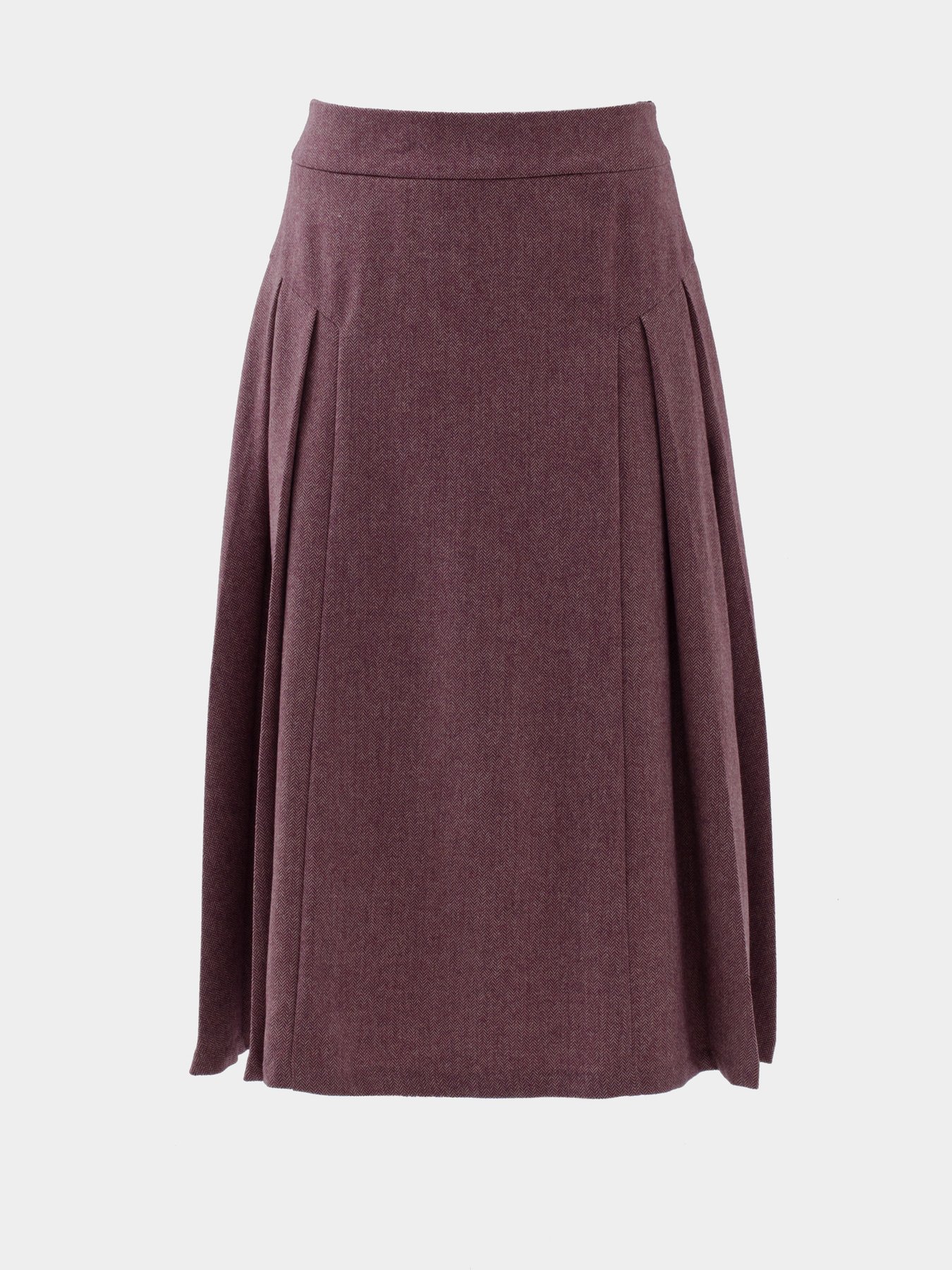 Юбка-миди из тонкого шерстяного твида винного оттенка. Модель с высокой посадкой на талии, дополненная боковыми складками. Изделие с застежкой на потайную молнию.