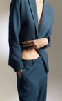 Однобортный жакет из шерстяной фактурной ткани морского оттенка.