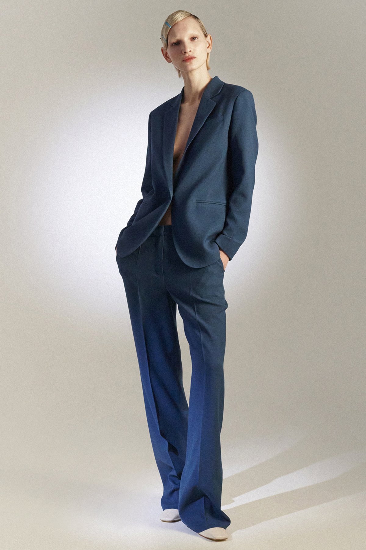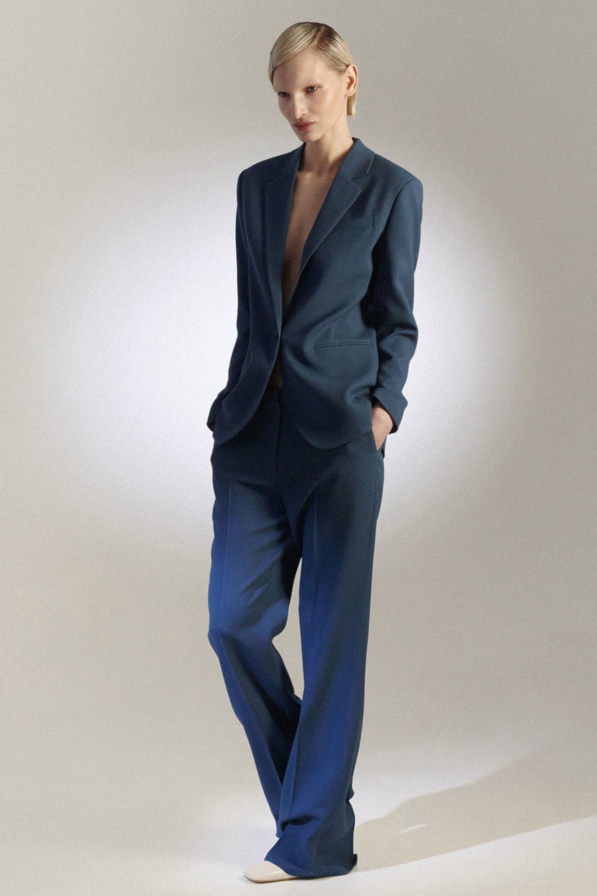 Однобортный жакет темно-синего оттенка