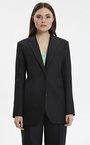 Однобортный жакет из черной костюмной шерсти с добавлением шелка