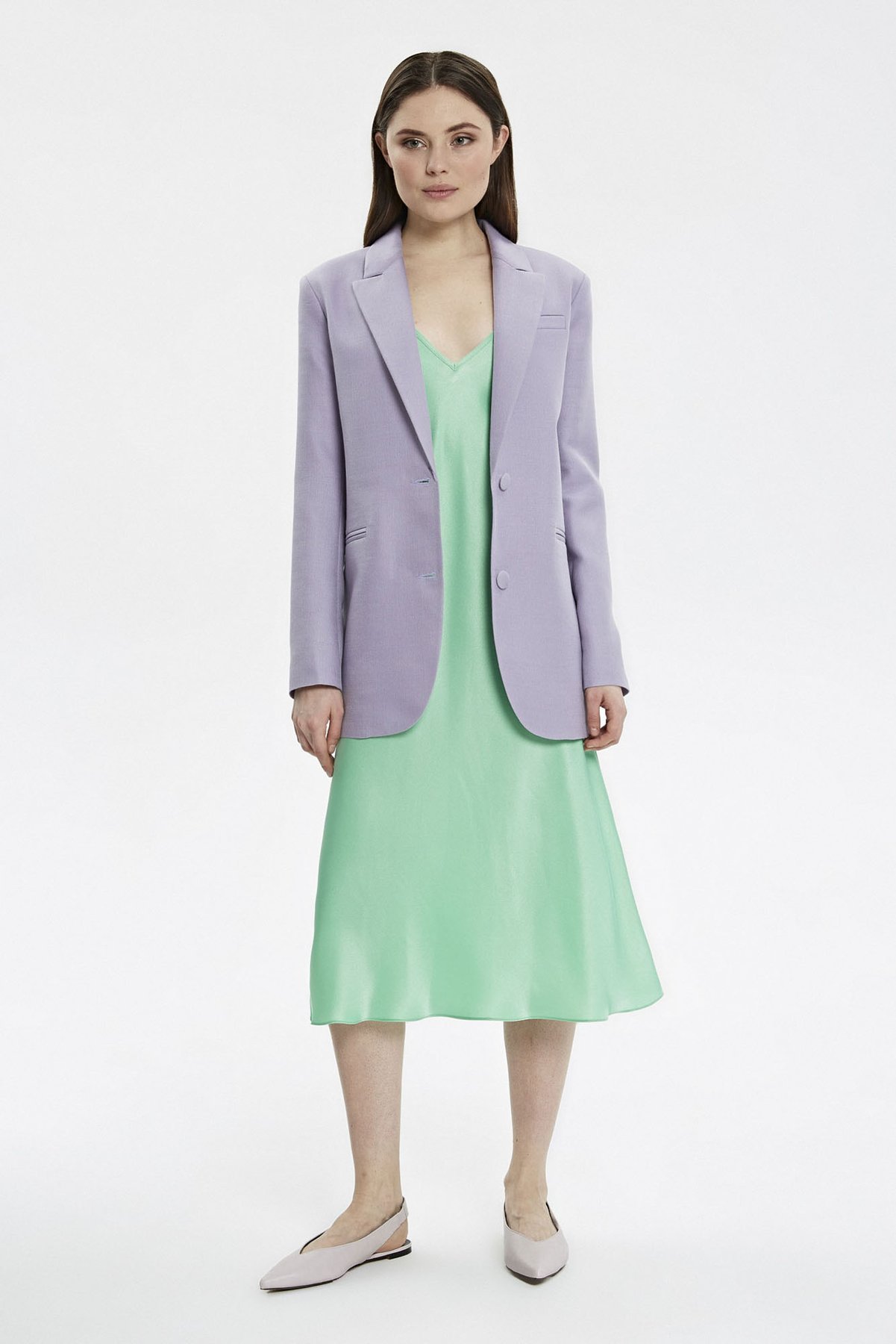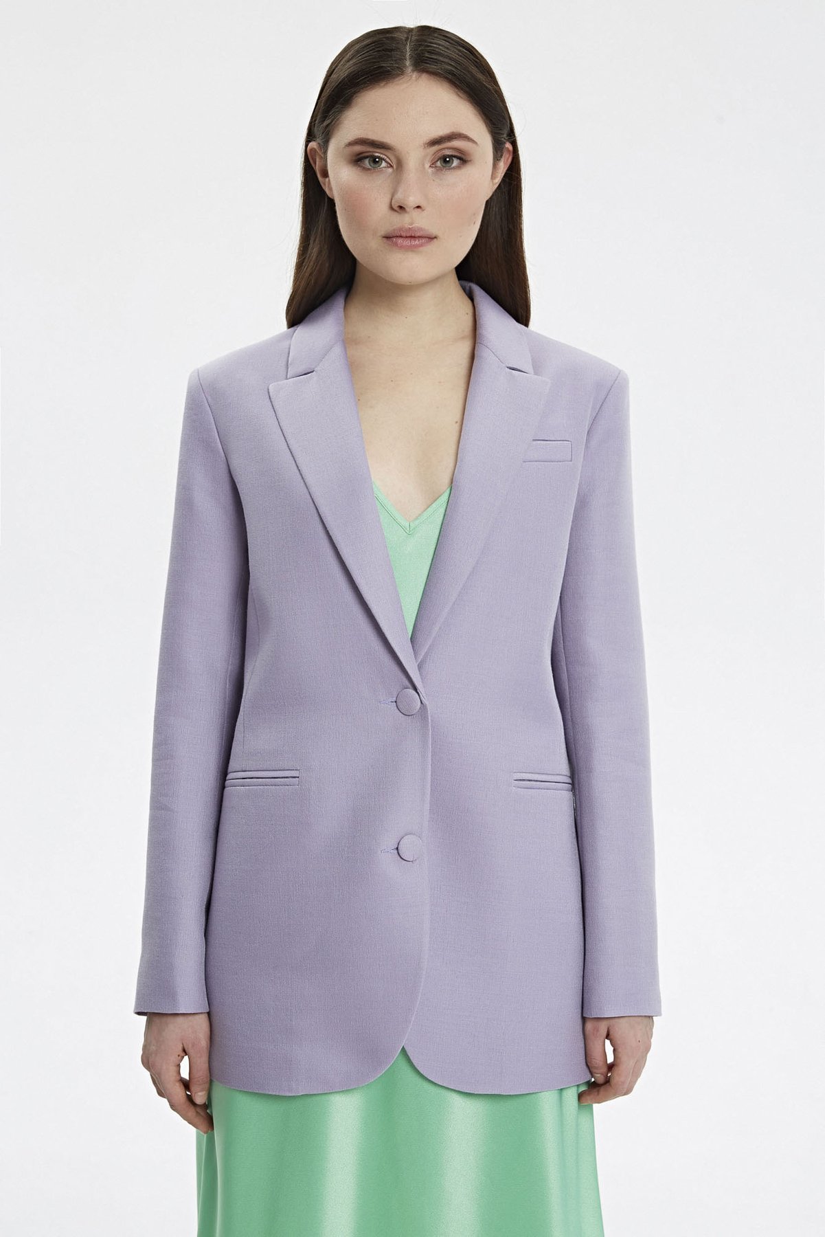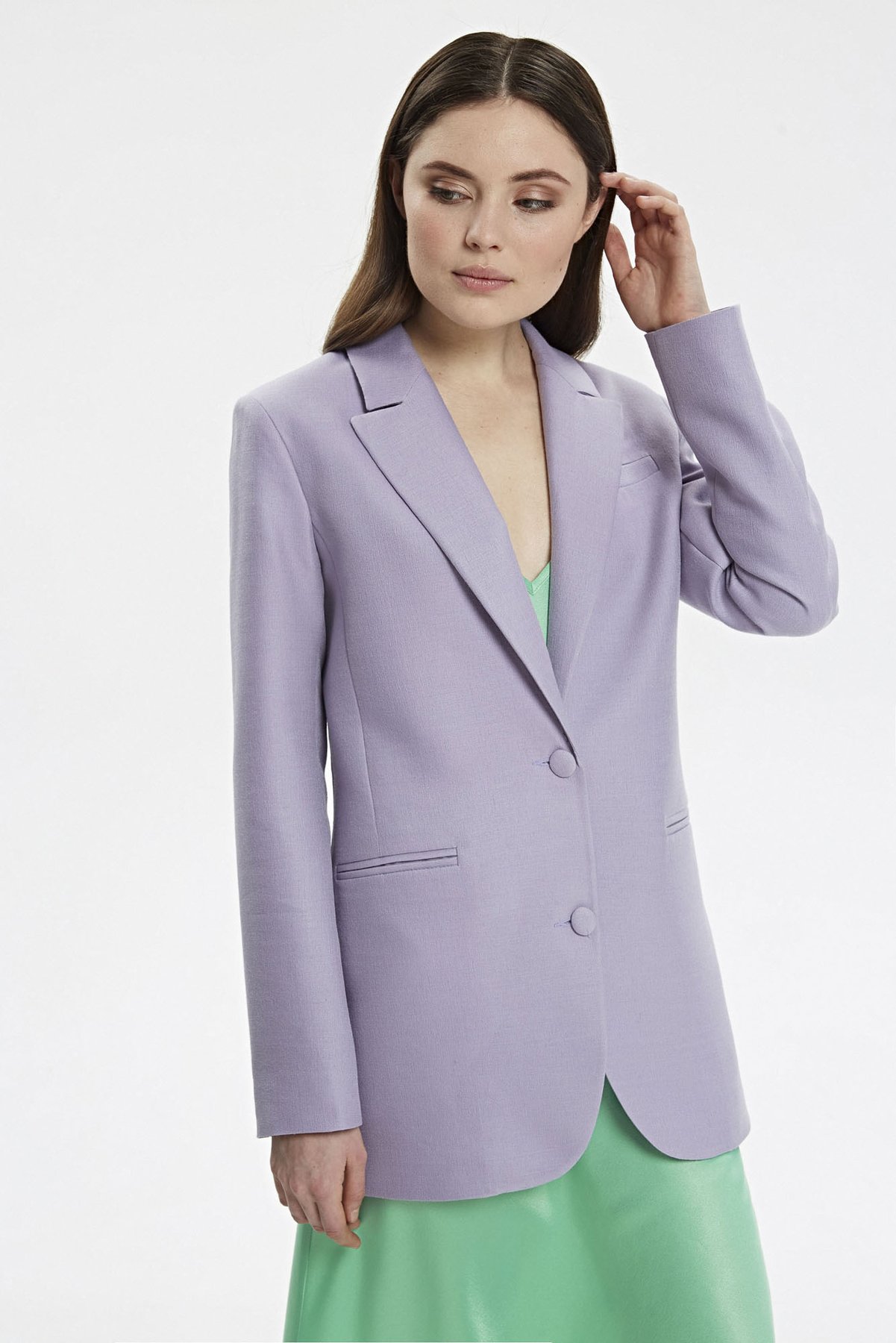 Однобортный жакет из костюмной шерсти с добавлением шелка сиреневого оттенка
