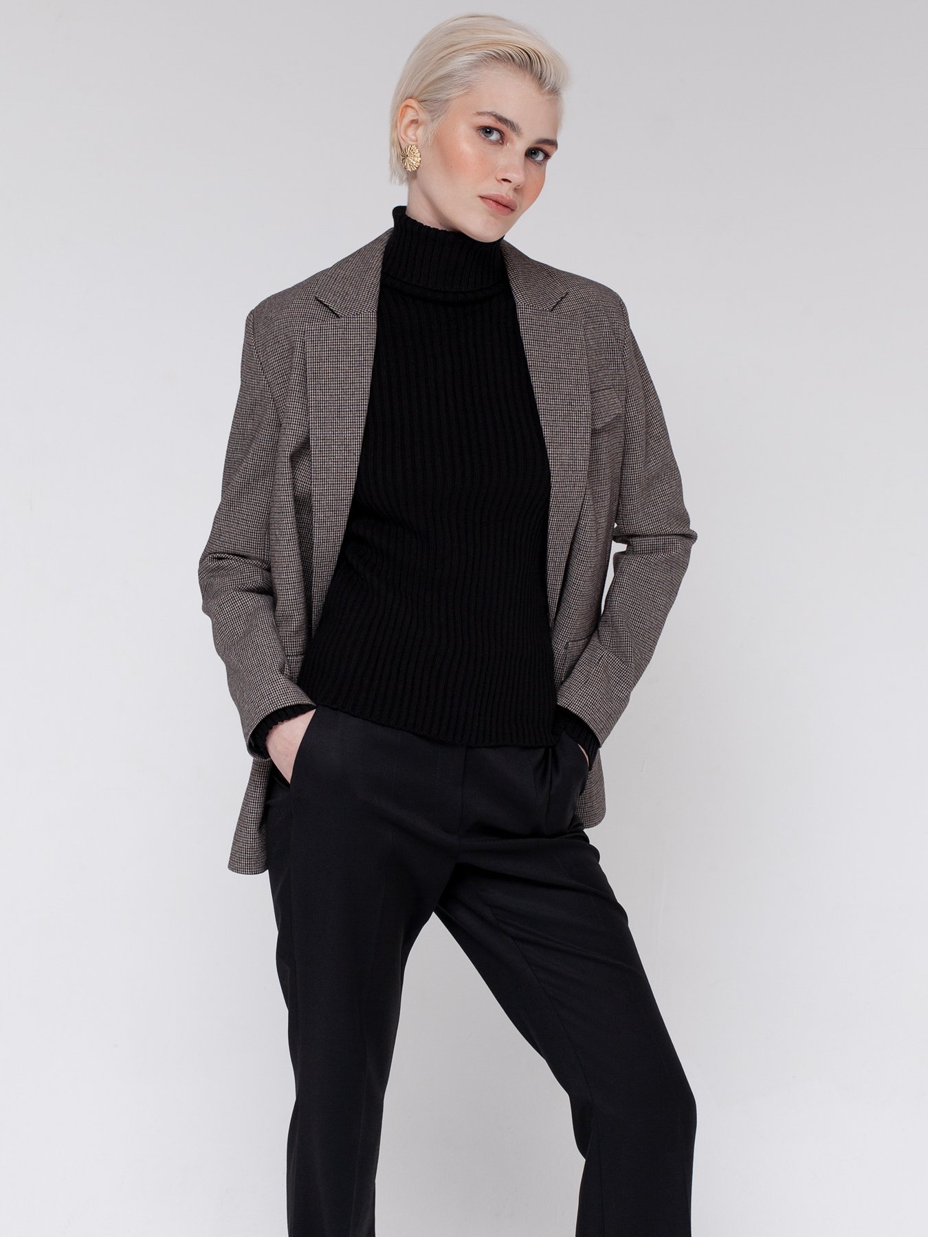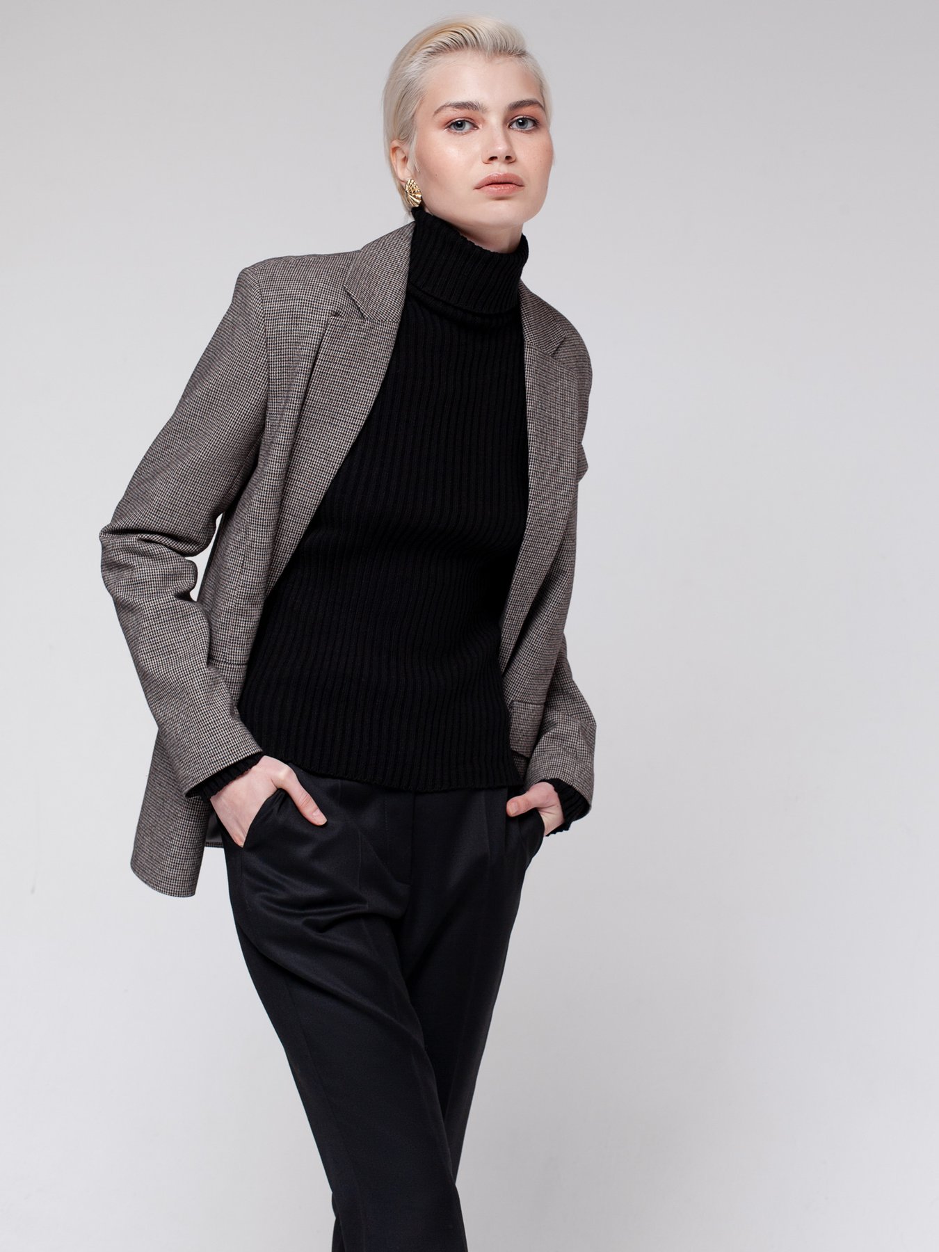 Однобортный жакет из костюмной ткани в мелкую клетку