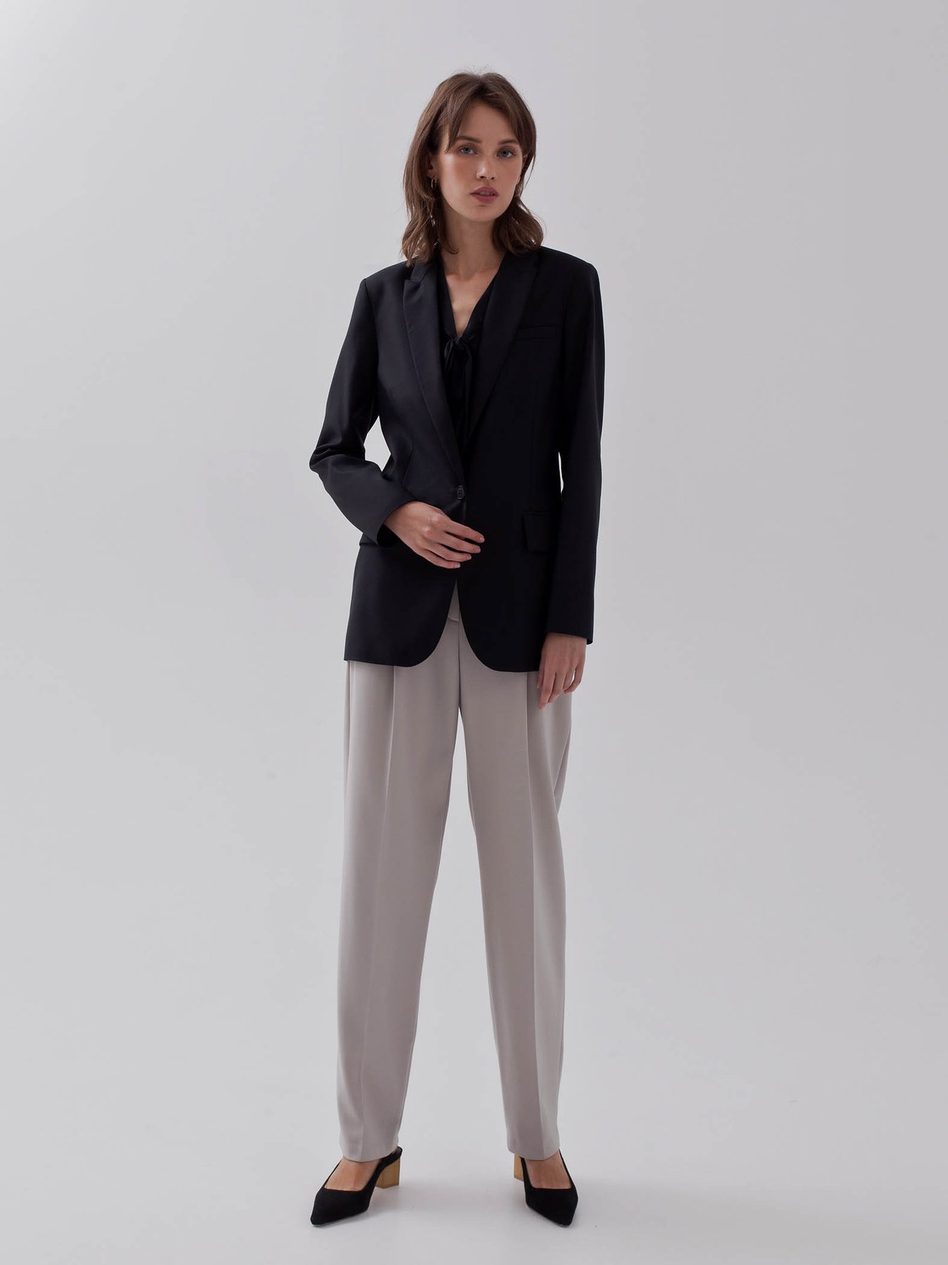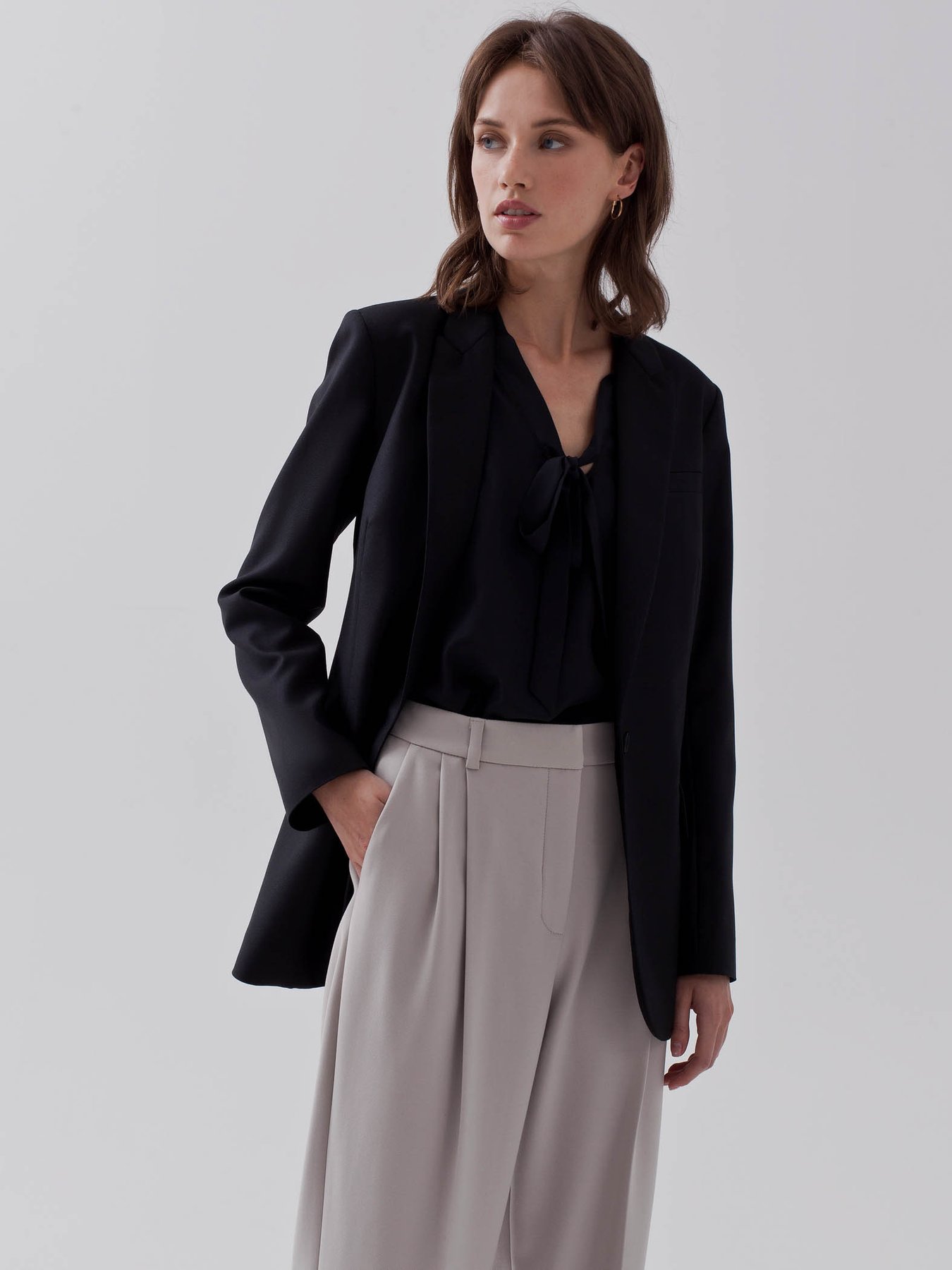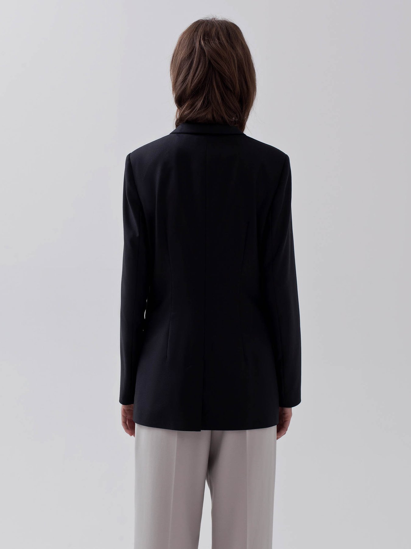 Жакет из черной костюмной шерсти с застежкой на одну пуговицу